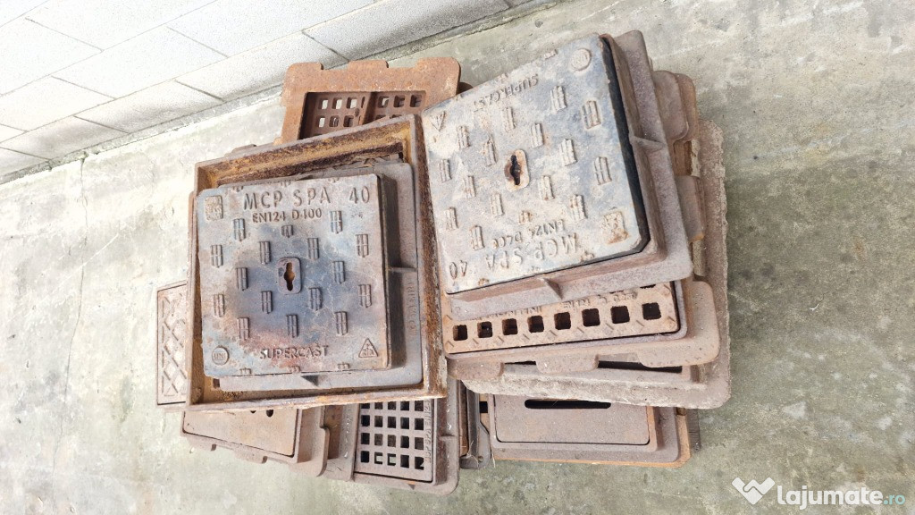 Capace pentru canalizare, în stare folosibilă. Acestea sunt realizate din material rezistent și pot fi utilizate pentru acoperirea și protejarea sistemelor de canalizare. Capace de dimensiuni diferite, cu un design simplu și funcțional.Pret: 1 euro + TVA/ kg