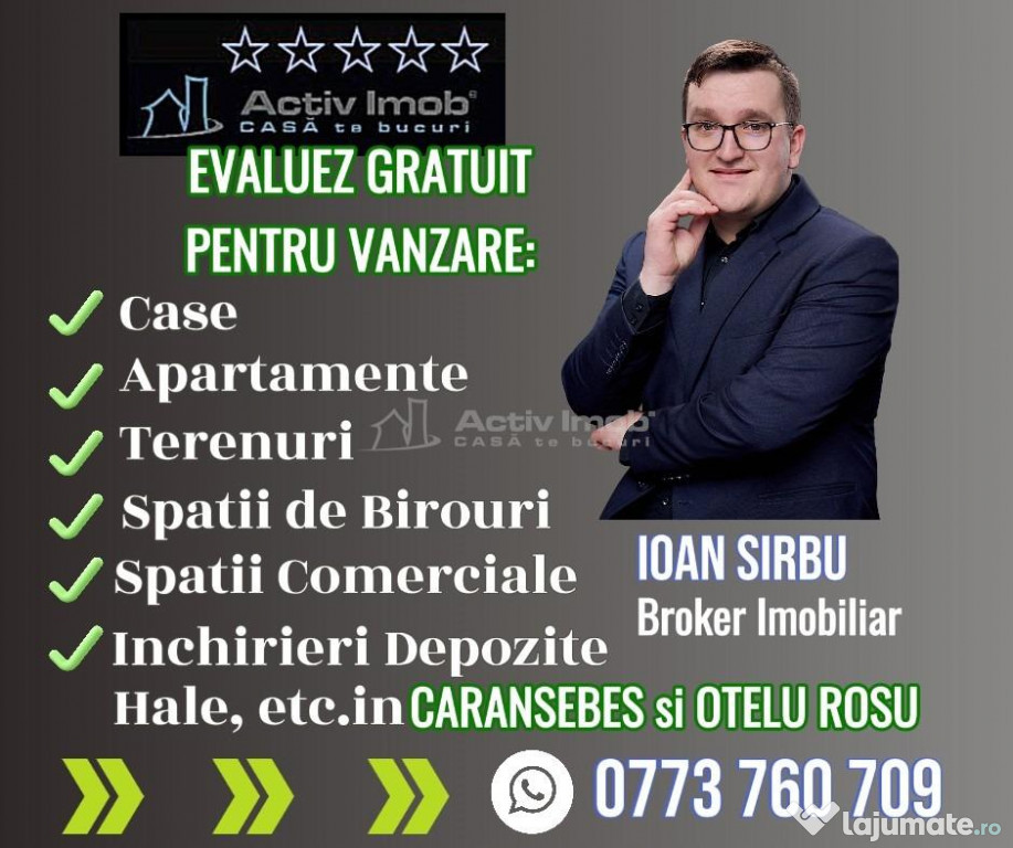 RECOMANDARE: PENTRU A VIZUALIZA TOATE OFERTELE SI A PRIMI NOTIFICARI CU NOILE OFERTE, VA RUGAM SA SOLICITATI CERERE DE PRIETENIE PE FACEBOOK, Imobiliare Ioan Sirbu Activ Caransebes si Otelu Rosu SAU ACCESATI SITE-UL DE IMOBILIARE AL TUTUROR CARASENILOR: resita.activimob.ro