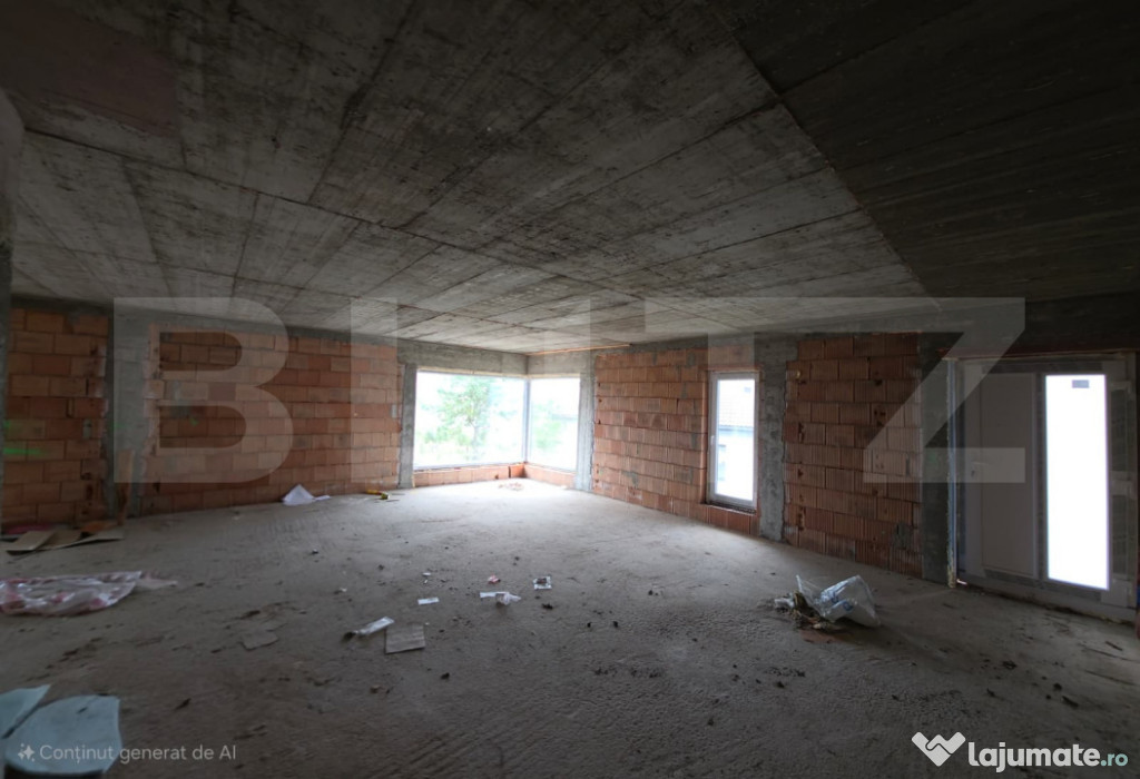 Blitz vă propune spre vânzare o casă pe un singur nivel, construită din cărămidă și beton, cu placă de beton, amplasată pe un teren de 6 ari, într-o zonă excelentă, cu priveliște deosebită. Locuința este inteligent compartimentată, oferind living cu bucătărie, 3 dormitoare, 2 băi, dressing, beci și spațiu de depozitare sub terasă. Dispune de toate utilitățile – curent, apă, canalizare și gaz – și se vinde în mai multe stadii: de la exterior finalizat și interior la roșu, până la varianta complet finisată și mobilată, cu posibilitatea de a alege materialele de finisaj. O casă ideală pentru o familie cu copii, ce îmbină confortul, liniștea și o vedere spectaculoasă.Cod ofertă / ID BLITZ: P153906