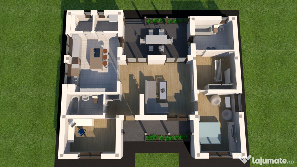 Imobilul este construit „la roșu”, cu materiale de cea mai bună calitate și atenție specială din partea arhitecților și echipei de construcție. Acoperișul și finisajele rămân la alegerea viitorului proprietar, oferindu-ți libertatea de a personaliza totul după gustul tău.