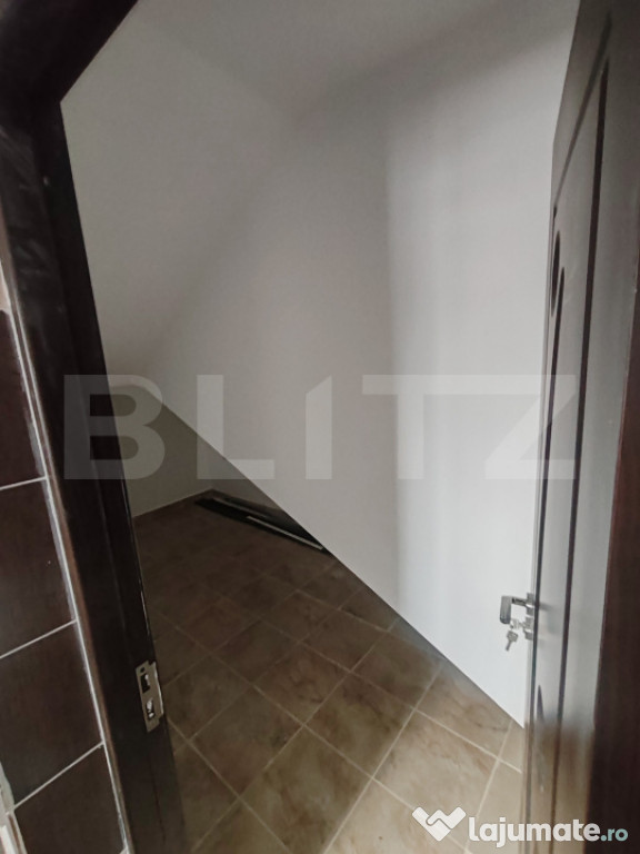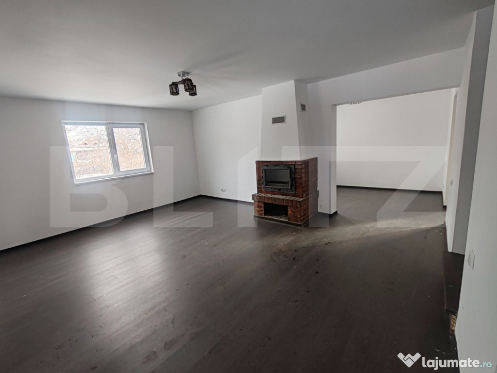 La parter, casa dispune de un living spațios cu șemineu, bucătărie cu spațiu de depozitare, birou și baie. Etajul este compartimentat în 3 dormitoare, o baie și un dressing, asigurând confort și funcționalitate pentru o familie.