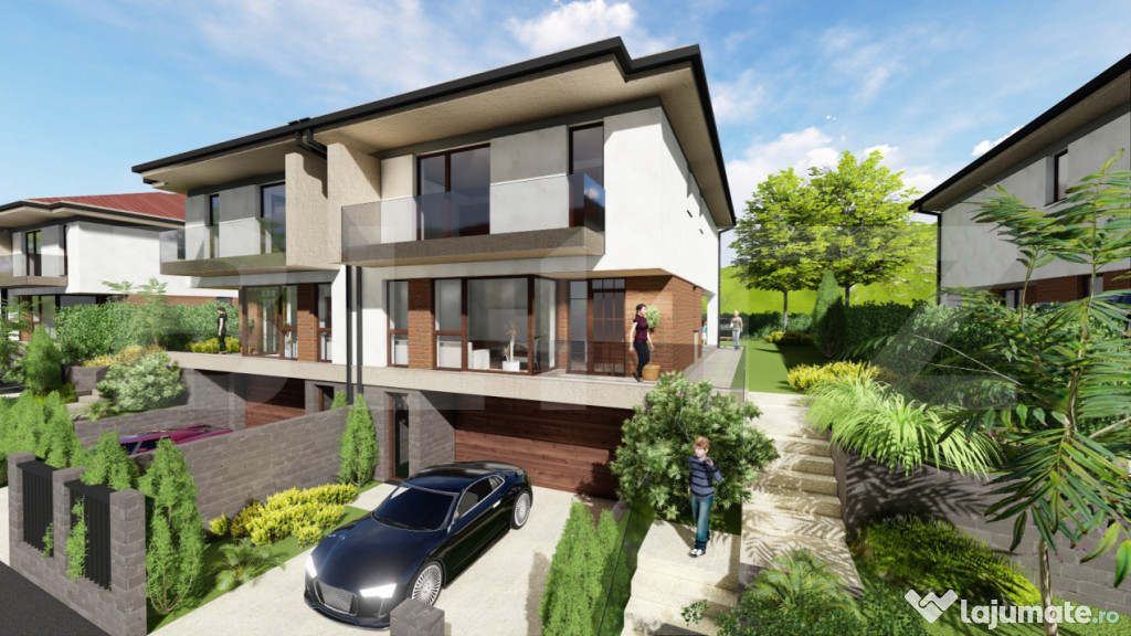 Blitz vă propune spre vânzare o casă cu design modern și construcție de calitate superioară, amplasată într-un ansamblu rezidențial nou, aflat în dezvoltare într-o zonă liniștită, cu acces facil către Cluj-Napoca.Proprietatea are o suprafață utilă de 185 mp și un teren de 300 mp, fiind proiectată pentru confort și eficiență energetică.