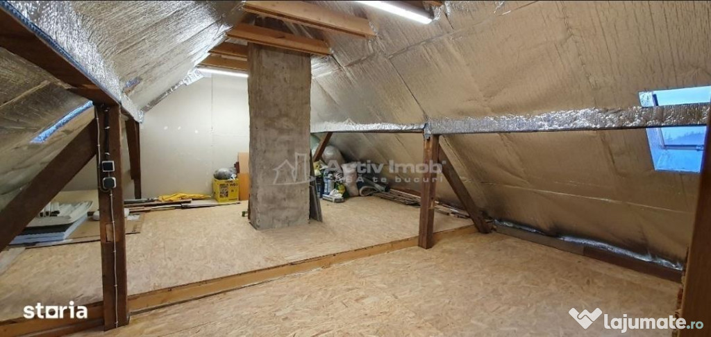 Pod mansardabil: inaltime 3.5 m, 7 m latime, 12 m lungime, izolat cu vata minerala 15 cm