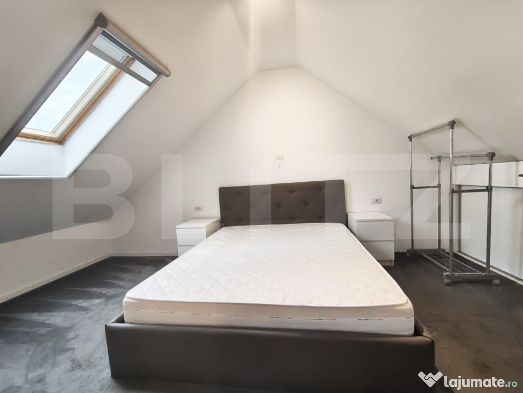 Blitz va ofera spre inchiriere o casa cocheta cu curte proprie, situata in zona Grigorescu.Casa are o suprafata de aproximativ 70 mp, este dispusa pe doua niveluri si beneficiaza de o curte frumos amenajata de 150 mp.