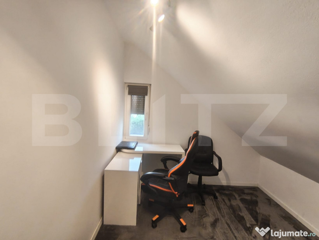 -la etaj se afla un dormitor spatios, o camera ce poate fi folosita ca birou sau dormitor secundar si o a doua baie.