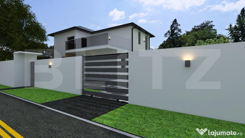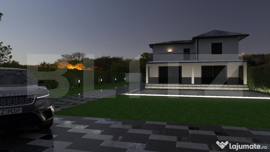 Blitz prezintă spre vânzare o casă nouă, modernă, finisată cu gust, cu suprafața de 160 mp și teren aferent de 750 mp.Compartimentare: