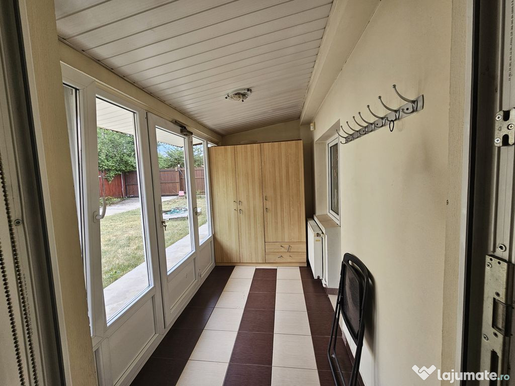 Va prezentam o casa renovata modern, cu o curte spatioasa si foarte frumoasa, cu foisor si o casa din lemn cu etaj care poate fi amenajata pentru locuit.Suprafata utila a casei este de aproximativ 120mp, 4 camere, 2 bai, bucatarie, terasa.