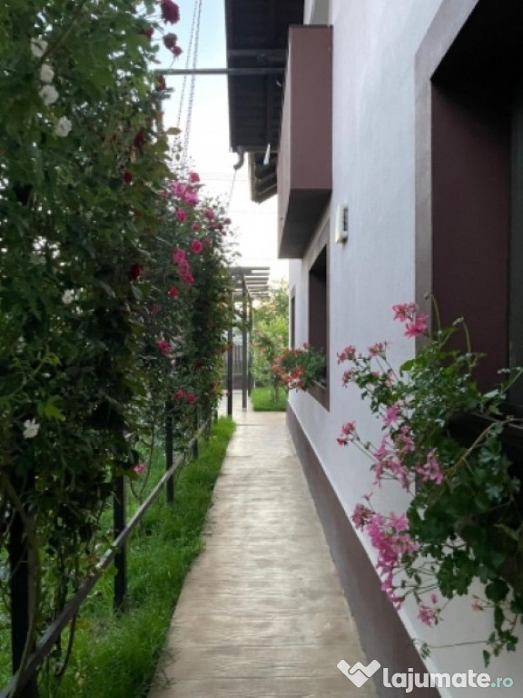 Diverse:alei beton amprentat ,pod cu acces din interior ,pergola auto, monitorizare video , alei perimetrale grădină din pavele , posibilitate de extindere număr panouri fotovoltaice.