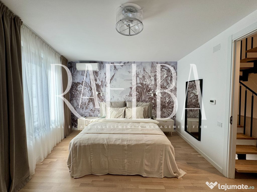 Vă propun spre închiriere o casă modernă și luminoasă aflată la prima inchiriere , mobilată şi utilata complet situată în Pipera, în cartierul ZenVille, o zonă înconjurată de liniște și multă verdeață.Ansamblul oferă acces ușor și rapid, la 7-10 minute cu mașina, la Aeroportul Henri Coandă și la polul principal de birouri situat în Dimitrie Pompeiu și Floreasca. Zona beneficiază de imediată proximitate a mall-urilor Băneasa și Pipera Plaza, precum și a școlilor de prestigiu din zonă, dar și de acces la centura Bucureștiului și la orașele limitrofe. De asemenea, transportul public este disponibil în apropiere, cu stațiile de autobuz pentru R459, 301 și 135.