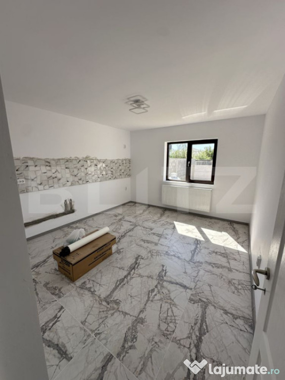 Blitz va propune spre achizitionare o casa moderna, recent construita cu materiale si finisaje de calitate situata in zona Damila, la pret de apartament, intr-o zona linistita de case.Aceasta are o suprafata utila de aproximativ 91 mp dupa cum urmeaza: living, bucatarie, baie si trei dormitoare, camera centrala.