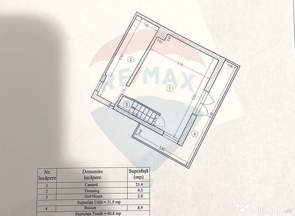 - 1 baie + 1 grup sanitar, balcon/terasa