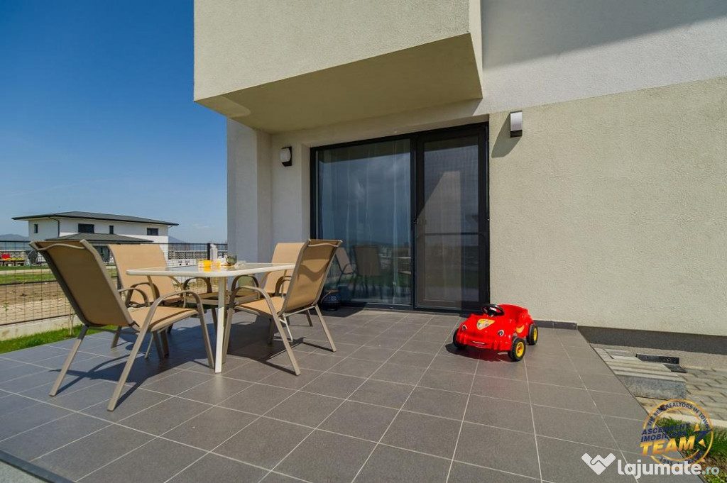 Proprietatea este proiectata pe doua niveluri si include trei dormitoare, trei bai, un living cu expunere spre terasa, bucatarie cu zona de dinning si spatii inteligent compartimentate pentru a oferi posibilitati multiple de a amenaja casa asa cum va doriti.