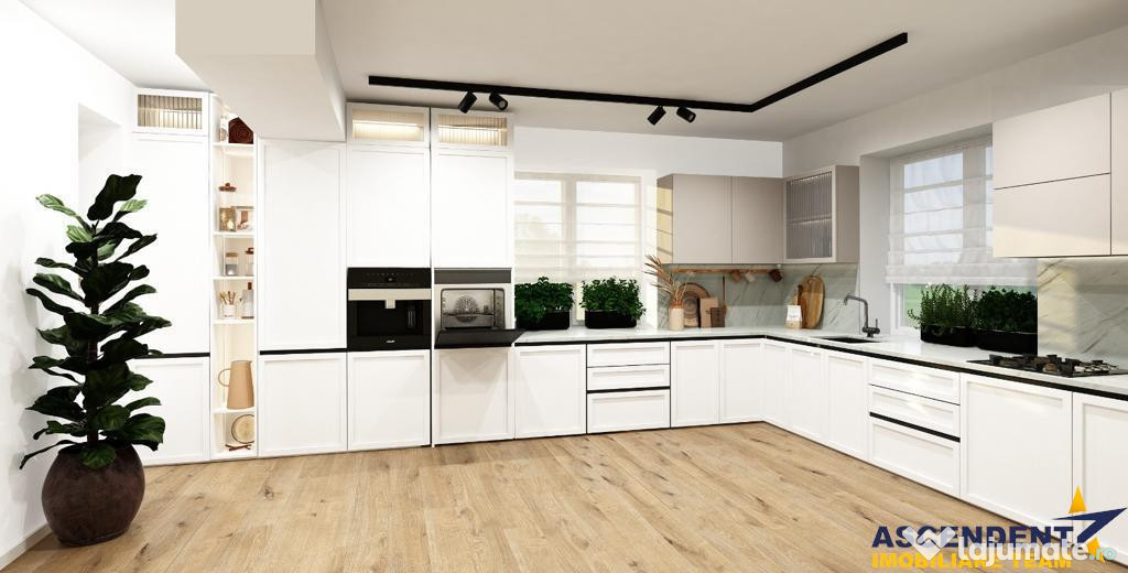 Bucataria are o suprafata ampla, luminoasa, cu locuri pentru depozitare si zona de luat masa. Spatiile largi, terasa si curtea generoasa, contureaza locul perfect pentru a va relaxa si a crea amintiri alaturi de cei dragi, evidentiind notiunea de ACASA.