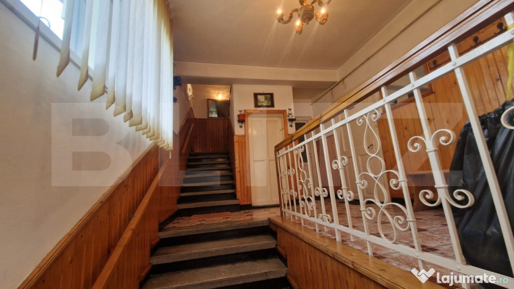 Se vinde o proprietate deosebit de versatilă, amplasată într-o zonă excelentă, cu deschidere la două străzi – oferind numeroase posibilități de utilizare. Noul proprietar poate transforma imobilul într-o locuință personală confortabilă sau într-o investiție profitabilă, cu potențial de amenajare ca spațiu comercial, birouri, clinică medicală, pensiune sau hostel. Clădirea este structurată pe demisol, parter, etaj și pod, fiecare nivel fiind contorizat separat pentru gaz și electricitate.Demisolul, cu intrare separată din stradă, a funcționat anterior ca spațiu comercial și are o suprafață utilă de 53,32 mp, fiind compus dintr-o cameră spațioasă, bucătărie și hol. Parterul cuprinde 3 camere luminoase, bucătărie, baie cu geam și o terasă închisă ideală pentru relaxare. Etajul a fost complet refăcut, oferind un living modern cu mini bar, o bucătărie mare, două camere și o baie generoasă cu cadă. Podul poate fi amenajat suplimentar, în funcție de necesități.