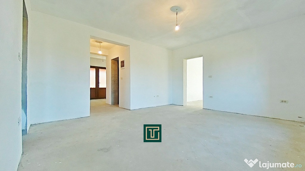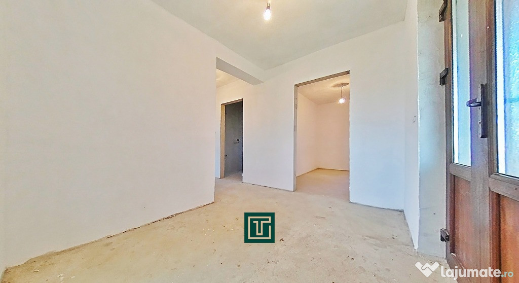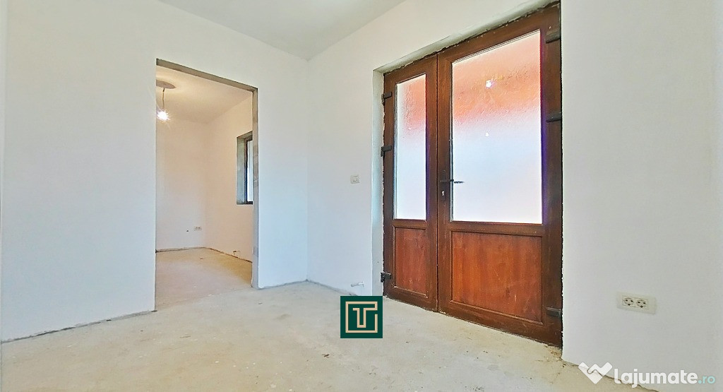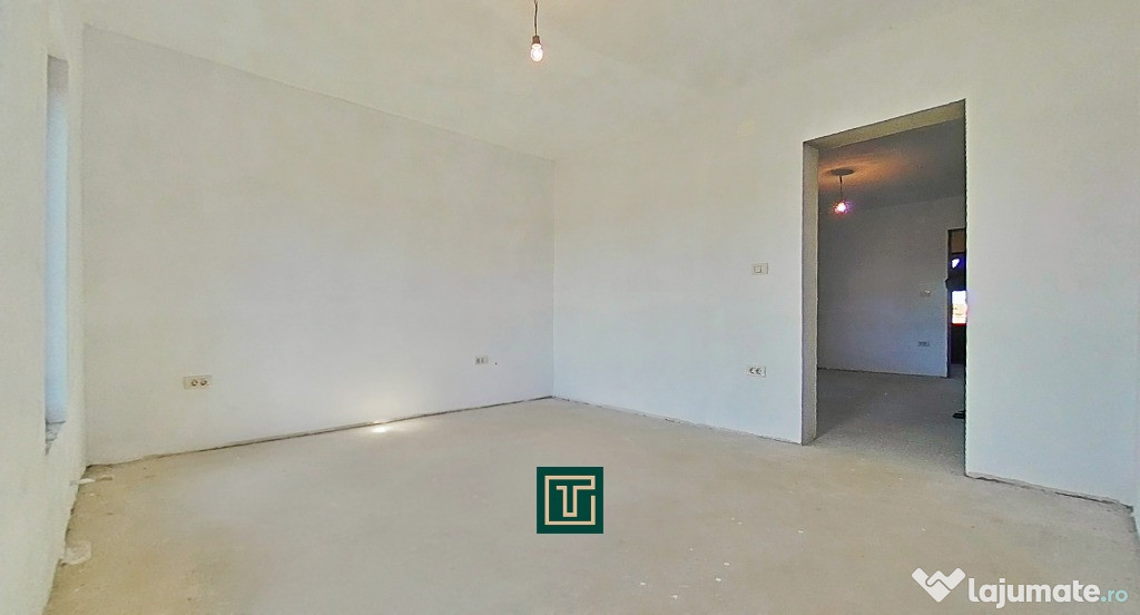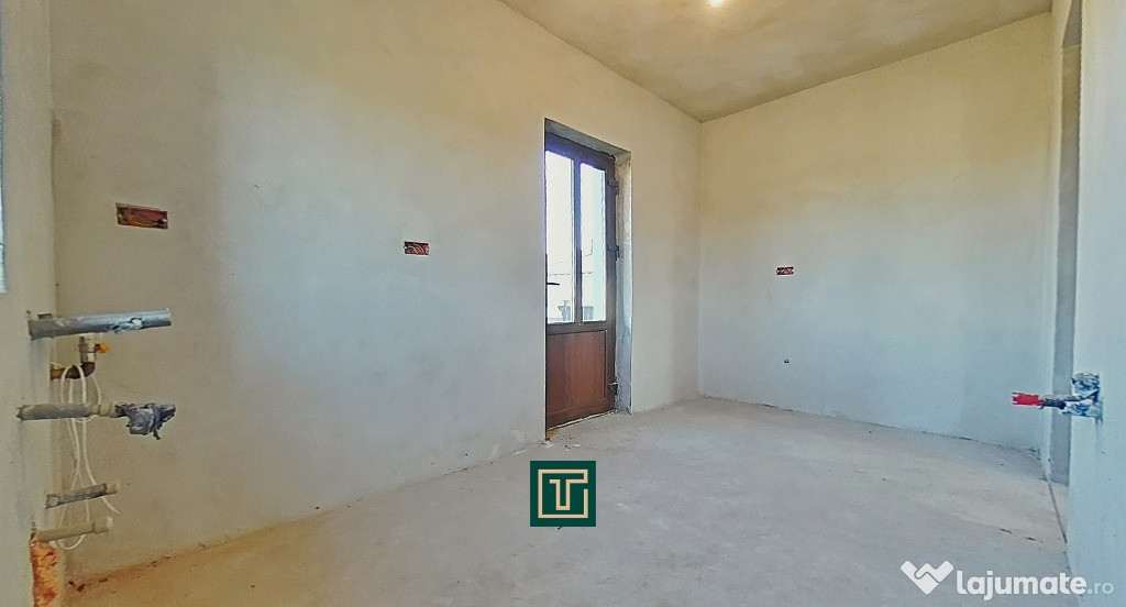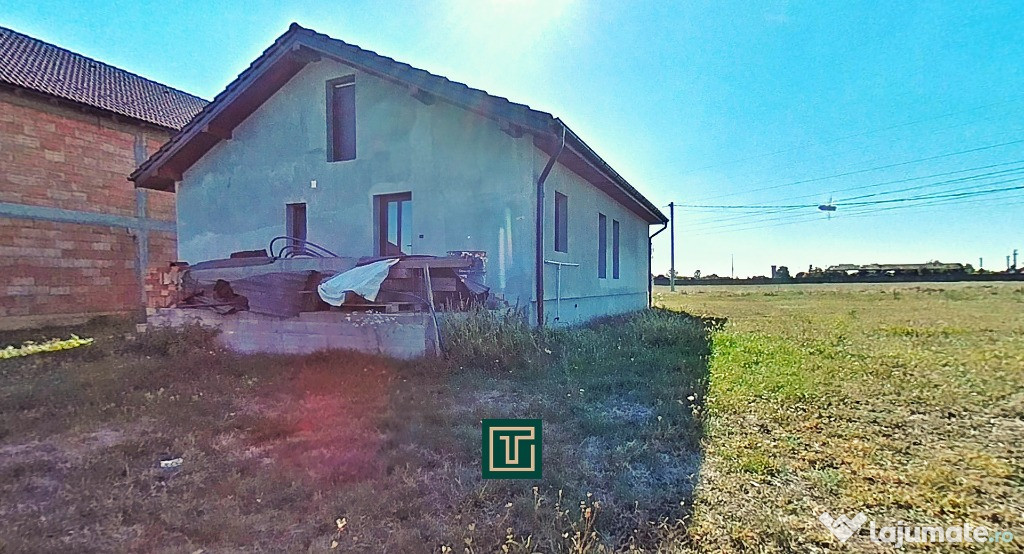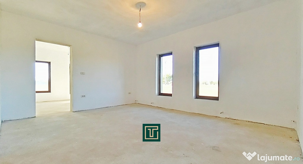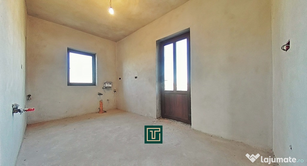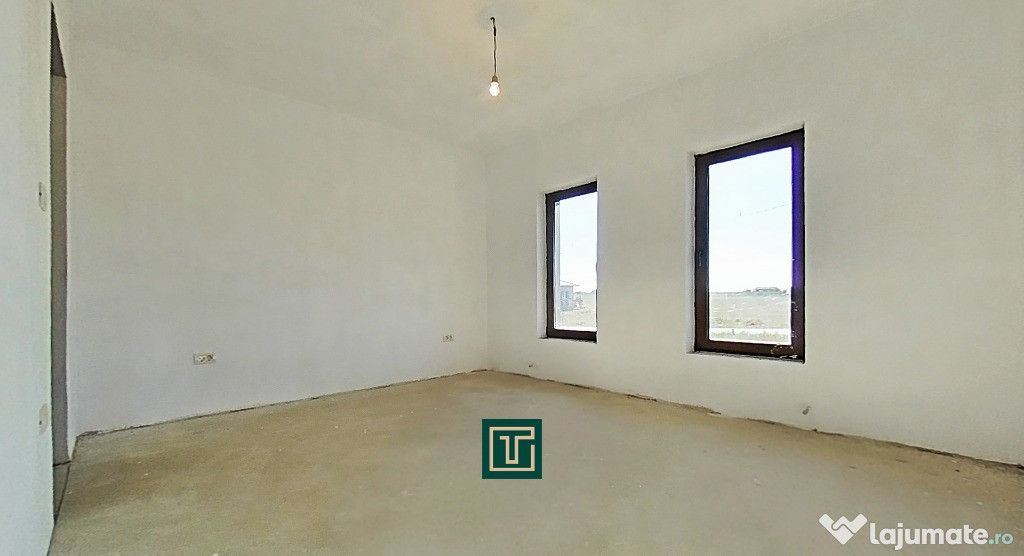 Construită în 2018, casa se află la stadiul de gri interior, oferind posibilitatea noului proprietar de a o amenaja complet după propriul gust.