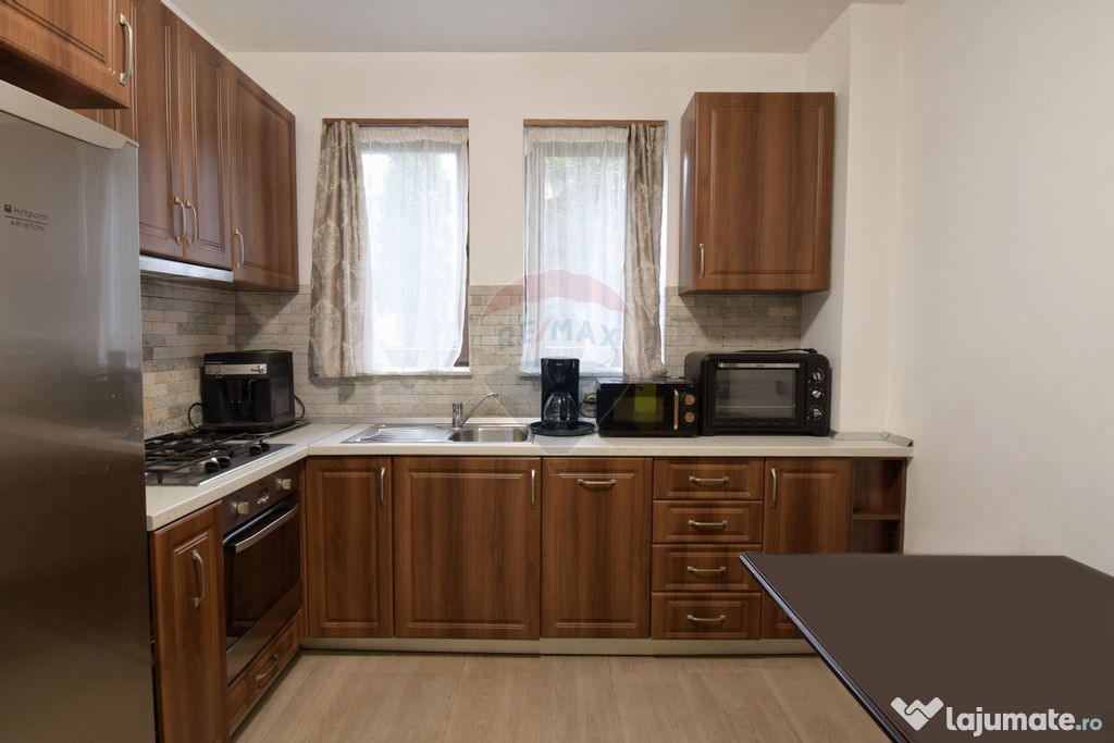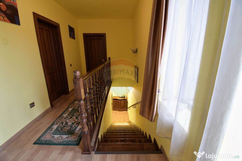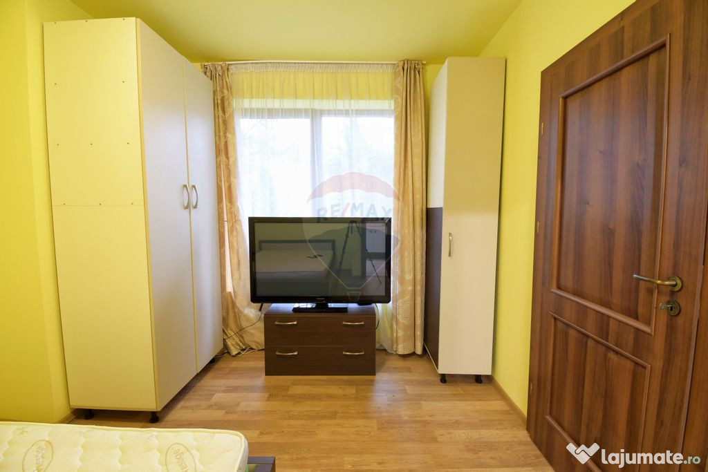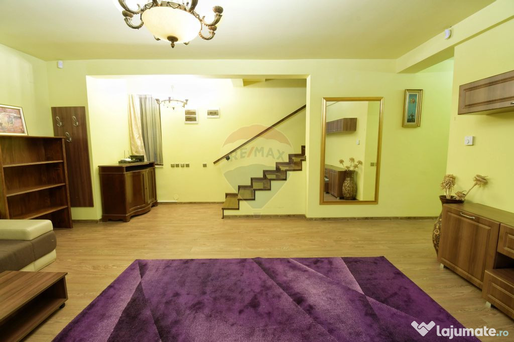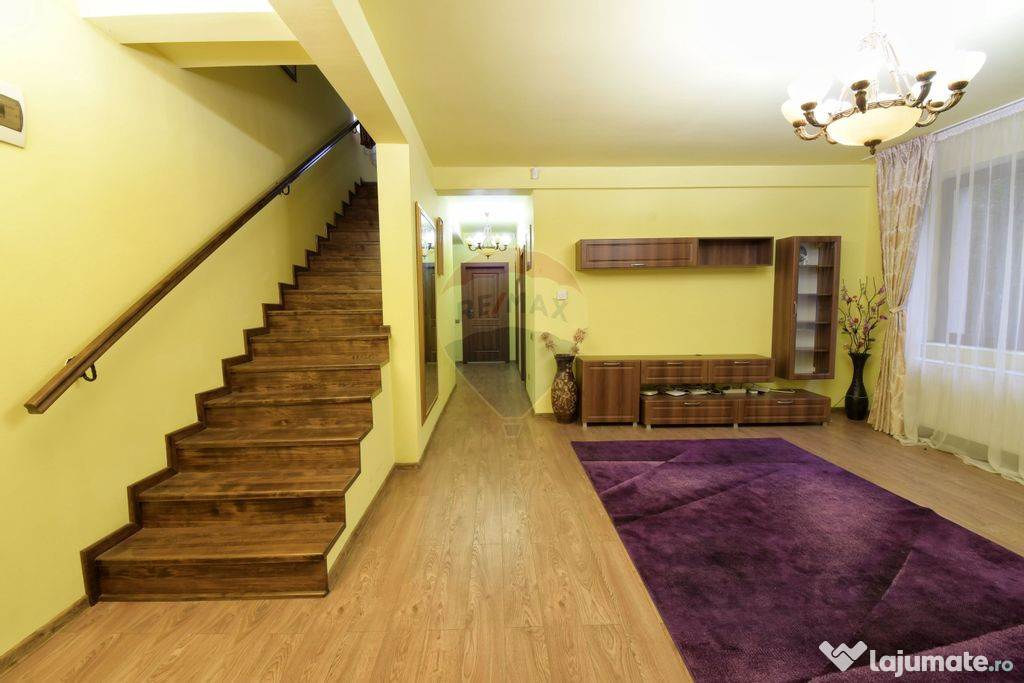Vă propunem spre închiriere o proprietate discretă, cu 5 camere, perfectă pentru o familie numeroasă, situată pe strada Stejarului, nr. 1B, Cluj-Napoca.Casa are regim de înălțime S + P + M, existând posibilitatea ca aceasta să fie locuită de 2 familii, având următoarea compartimentare: