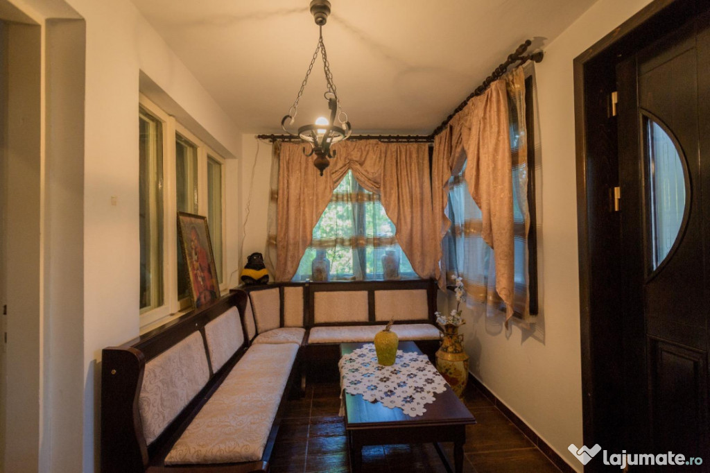 Va prezentam spre vânzare o proprietate care se afla in aceeași familie de zeci de ani. Casa principală este din cărămidă la parter si lemn la etaj. Exista bucătării de vara, beci loc pentru găini si multe alte acareturi. Terenul de 1900 mp este plan si poate fi cultivat. In curtea principală, sunt copaci si o grădină cu numeroase flori.Încălzirea este făcută cu o centrala pe lemne, dar se poate instala si pompa de caldura.