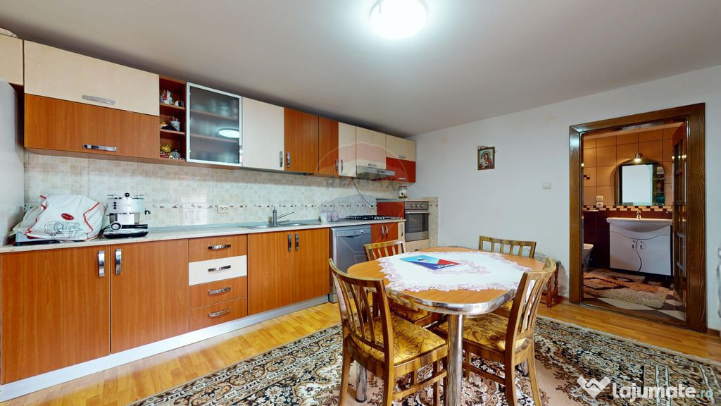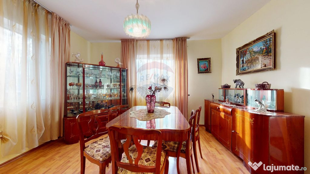 Construită în 1970, casa principală, cu o suprafață de 144 mp, îmbină aerul tradițional cu căldura unui cămin bine gândit. Cele 4 dormitoare de câte 16 mp, livingul luminos de 18 mp și bucătăria primitoare de 19 mp creează un spațiu ideal pentru o familie care apreciază confortul, intimitatea și generozitatea spațiilor. Cele 2 băi completează perfect funcționalitatea locuinței.