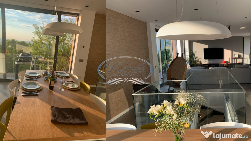Koncept Imobiliare va ofera spre inchiriere o casa individuala superba, situata in Feleacu, intr-o zona rezidentiala apreciata pentru liniste, intimitate si panorama spectaculoasa asupra orasului Cluj-Napoca. Proprietatea beneficiaza de acces facil catre oras si se remarca prin pozitionare, suprafete generoase si compartimentare eficienta, fiind ideala pentru o familie care isi doreste confort si calitate a vietii. Imobilul are o suprafata utila de 160 mp si este amplasat pe un teren de 580 mp, cu regim de inaltime P+1. Compartimentarea este gandita pentru functionalitate si separarea clara a zonelor de zi si noapte. Parterul este dedicat zonei de odihna si include 3 dormitoare, dressing, 2 bai, spatiu tehnic, spalatorie, spatiu de depozitare, casa scarii si hol. Etajul este destinat zonei de zi si cuprinde un living spatios, bucatarie cu loc de luat masa, terasa cu panorama, baie si hol, oferind un cadru ideal pentru relaxare si socializare. Casa a fost construita in anul 2017 si beneficiaza de finisaje de calitate superioara, fiind inchiriata complet mobilata si utilata, astfel incat viitorii chiriasi sa se poata muta imediat. Spatiile sunt luminoase, bine proportionate, iar terasa ofera o vedere deschisa si neobstructionata asupra orasului, un element diferentiator important. Printre avantajele proprietatii se numara pozitionarea intr-o zona aerisita si linistita, panorama deosebita, suprafata generoasa a terenului, compartimentarea ideala pentru familie, precum si starea foarte buna a imobilului. Aceasta proprietate se adreseaza celor care cauta o locuinta de familie intr-un cadru natural, dar cu acces rapid catre oras. Casa este disponibila imediat. Pentru informatii suplimentare, programarea unei vizionari sau pentru a afla oferta noastra completa va stam la dispozitie telefonic, prin e-mail sau la sediul agentiei noastre, pe str. Aviator Badescu, nr. 19, Cluj-Napoca.Id intern: P21108