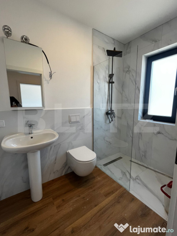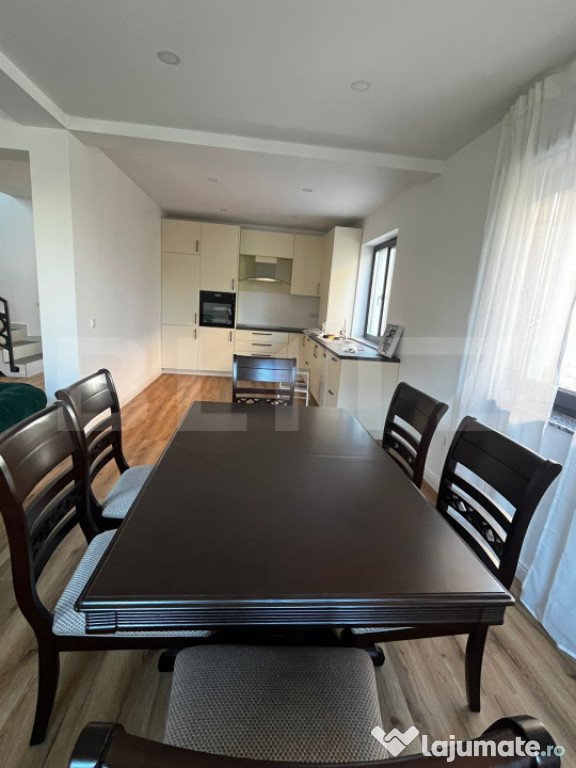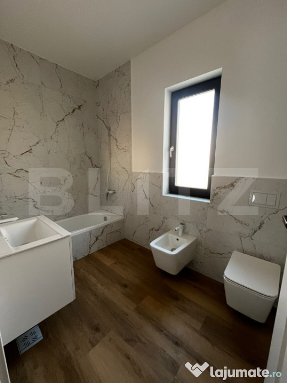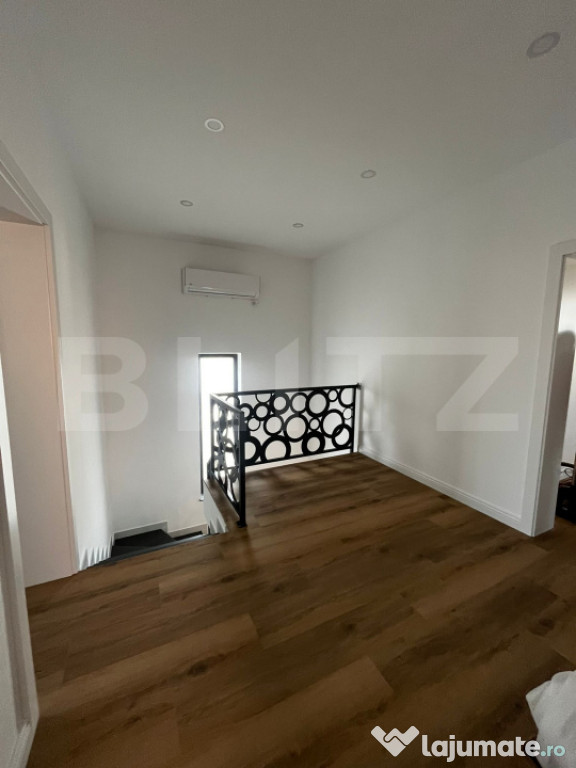 Va propunem spre inchiriere casă modernă, spațioasă, complet mobilată și utilată, aflată la prima închiriere. Locuința este ideală pentru o familie sau pentru cei care își doresc un cămin confortabil, cu spații bine gândite și finisaje de calitate.???? Compartimentare: