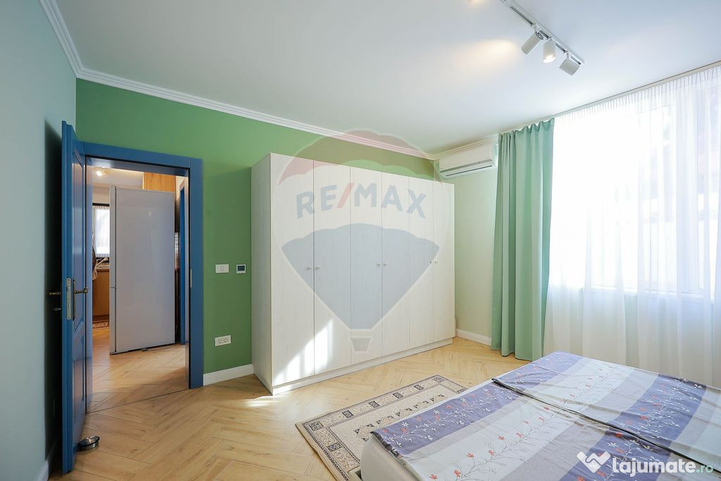 - Renovată integral în 2024, cu finisaje moderne și instalații noi