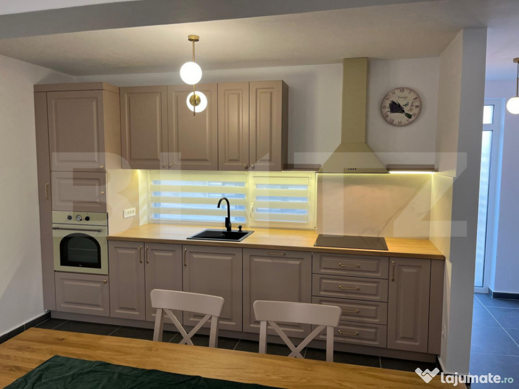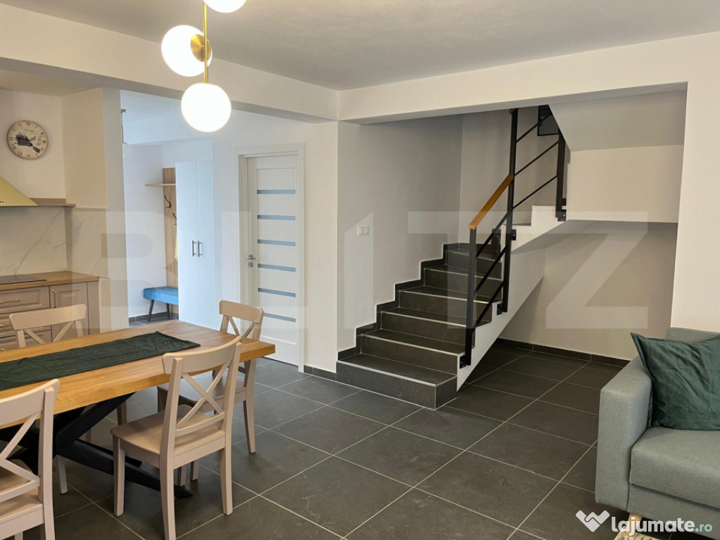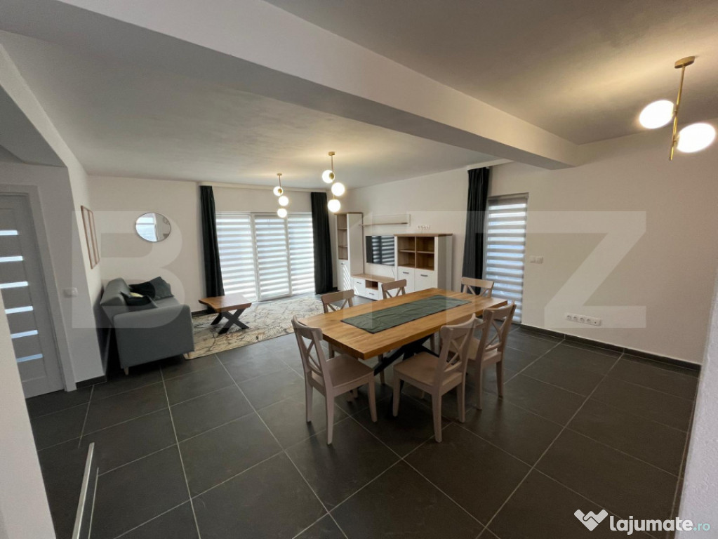 Se oferă spre închiriere casă modernă, construcție nouă, ideală pentru o familie. Imobilul este compartimentat eficient și dispune de 3 dormitoare spațioase, 2 băi, bucătărie și living luminos, cu un design contemporan și finisaje de calitate superioară.Casa beneficiază de materiale moderne, instalații noi și un ambient plăcut, oferind confort și funcționalitate. Proprietatea include 2 locuri de parcare, asigurând comoditate pentru locatari.