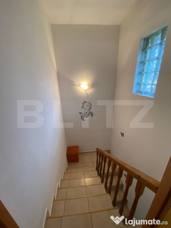 Casă spațioasă cu mansardă, curte amenajată cu grătar