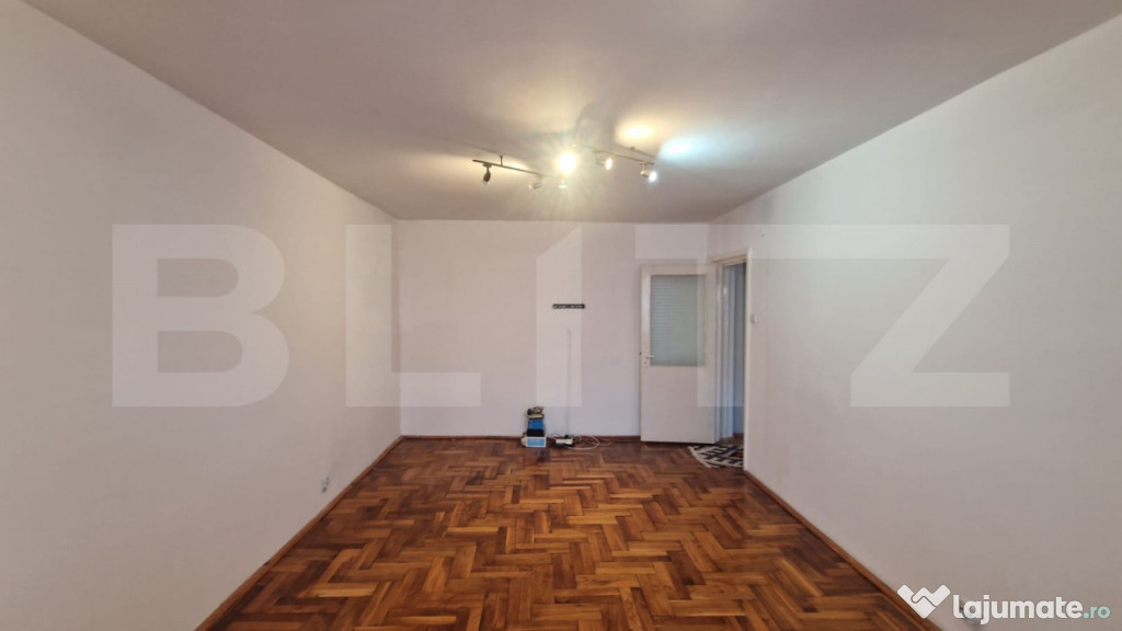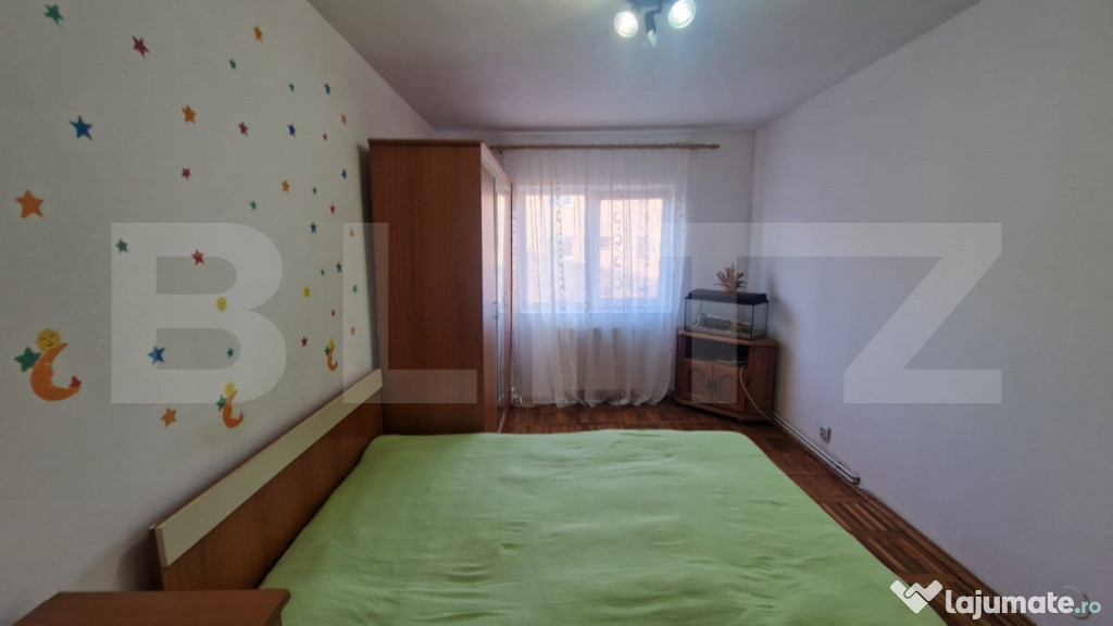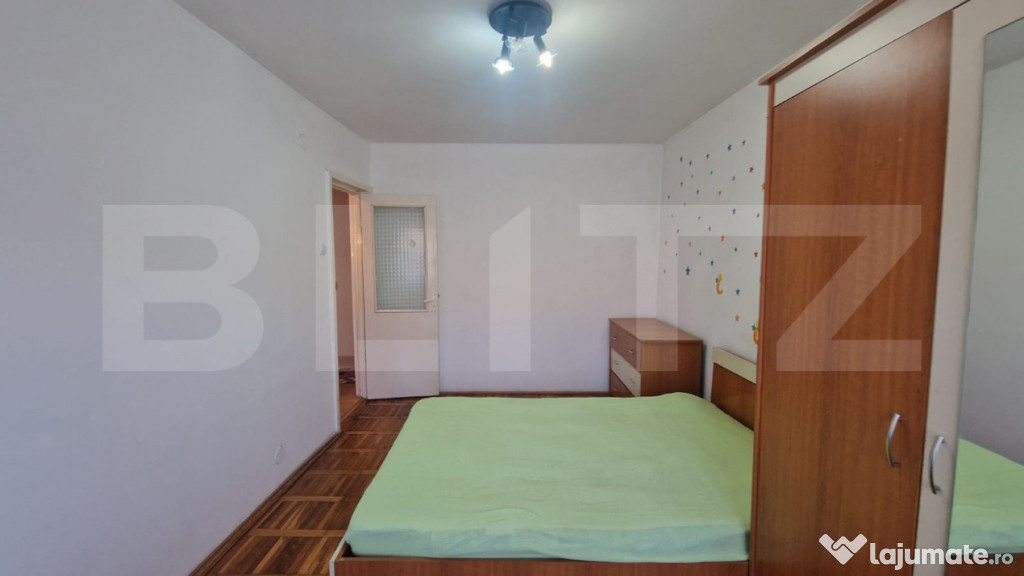 Se vinde apartament decomandat, luminos, cu bucătărie mare și două locuri de parcare.Blitz va propune un apartament decomandat, aerisit, cu bucătărie spațioasă, pătrată, prevăzută cu debară. Apartamentul dispune de centrală proprie și este foarte bine întreținut.