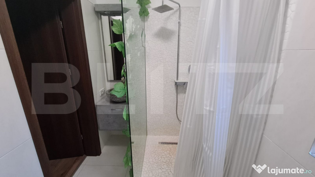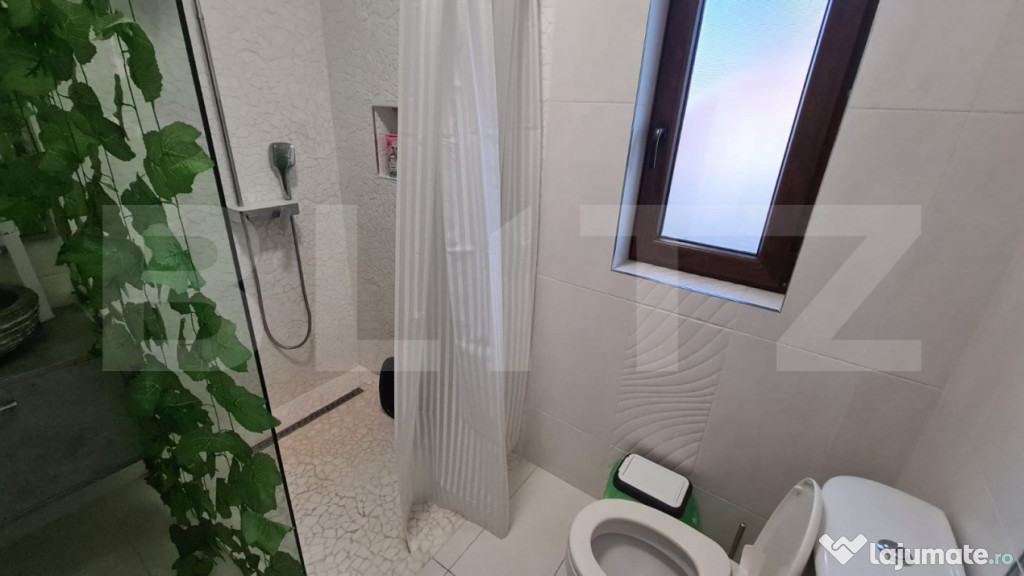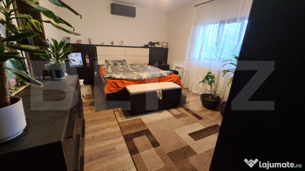 Blitz va oferă spre vânzare o locuință confortabilă, bine compartimentată, situată într-o zonă liniștită, ideală pentru familii sau persoane care își doresc intimitate și acces rapid către oraș.Proprietatea se vinde complet mobilată la acest preț usor negociabil