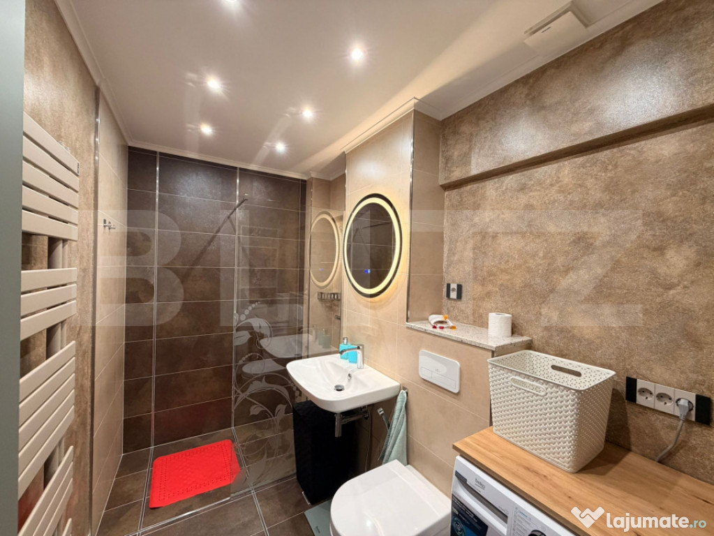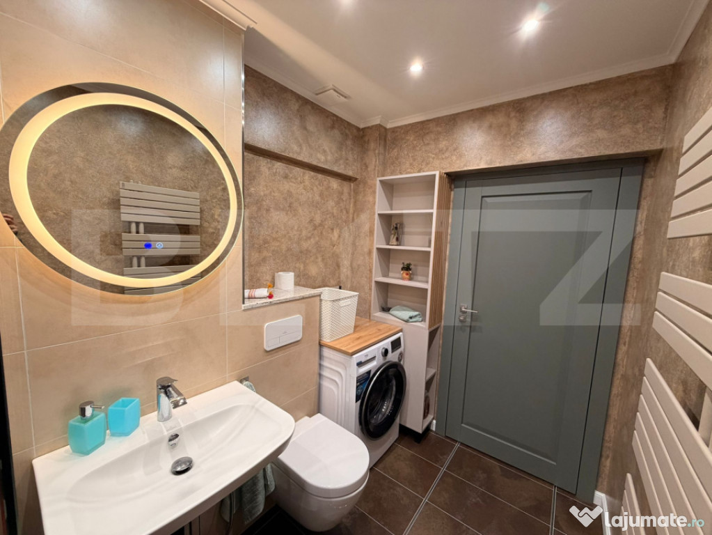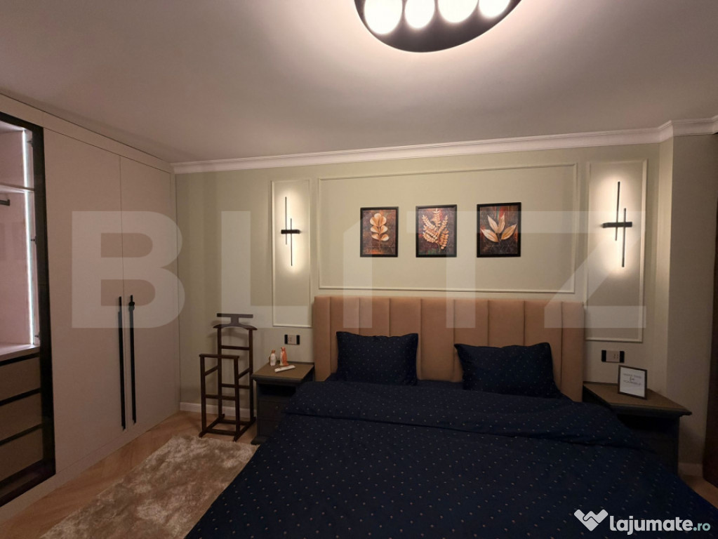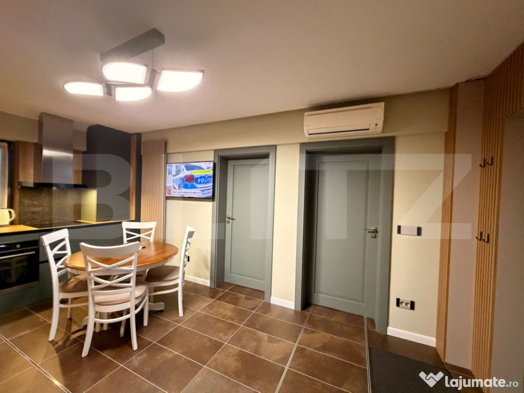 Designul interior se remarcă prin mobilier contemporan, finisaje de calitate și un dressing elegant din sticlă cu iluminare integrată. Confortul este susținut de centrala proprie și aerul condiționat, care asigură control total asupra climatului interior.