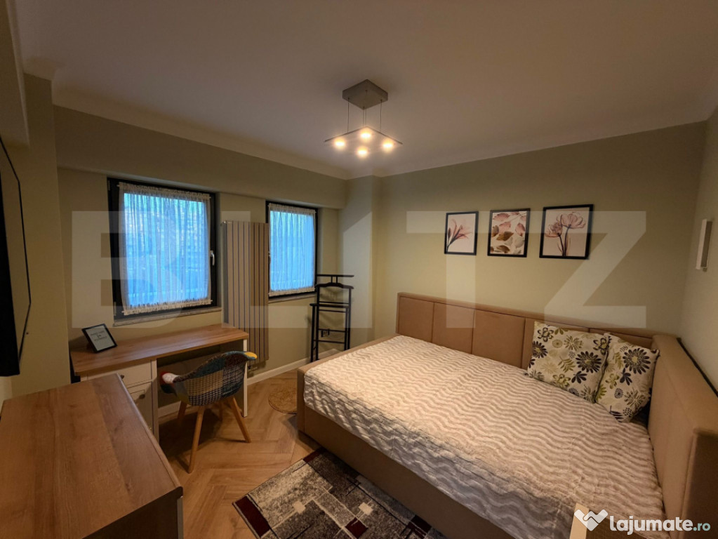 Blitz va propune spre inchiriere un apartament premium, ultracentral – 2 camere configurate în 2 dormitoare, cu vedere directă către Esplanada Teatrului Național.Apartamentul dispune de două dormitoare complet amenajate, rezultat al unei compartimentări eficiente, ce optimizează spațiul și creează o atmosferă ideală atât pentru rezidență, cât și pentru activități remote.