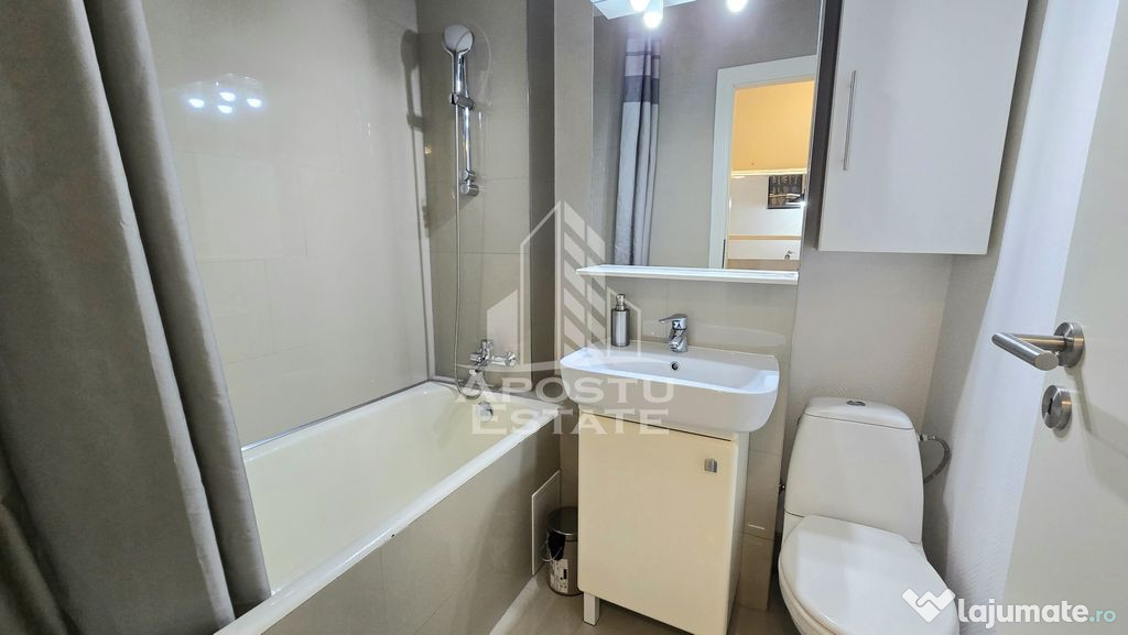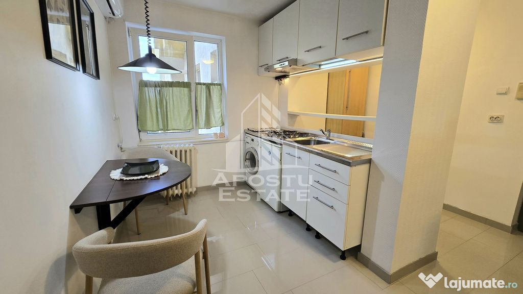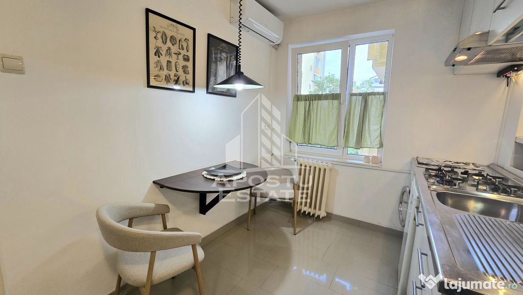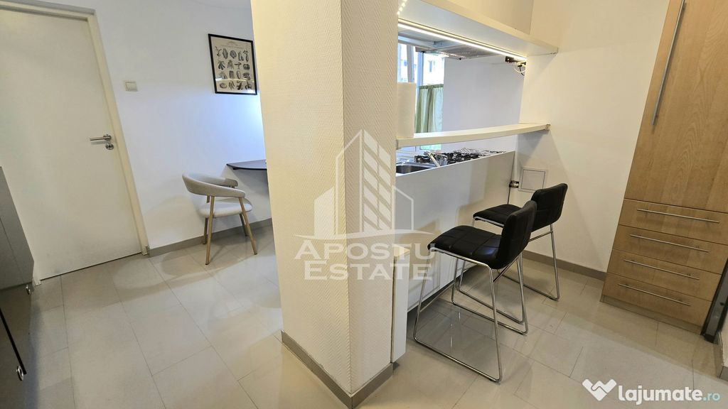 Apostu Estate va ofera spre vanzare un apartament cu o camera, ideal atat ca si investitie cat si de locuit, situat intr-un bloc ce dispune de lift, la etaj intermediar, etajul 5, in zona Iulius Mall.Apartamentul se afla la doar cateva minute fata de statia de autobuz, parc, centru sau fata de Iulius Mall.