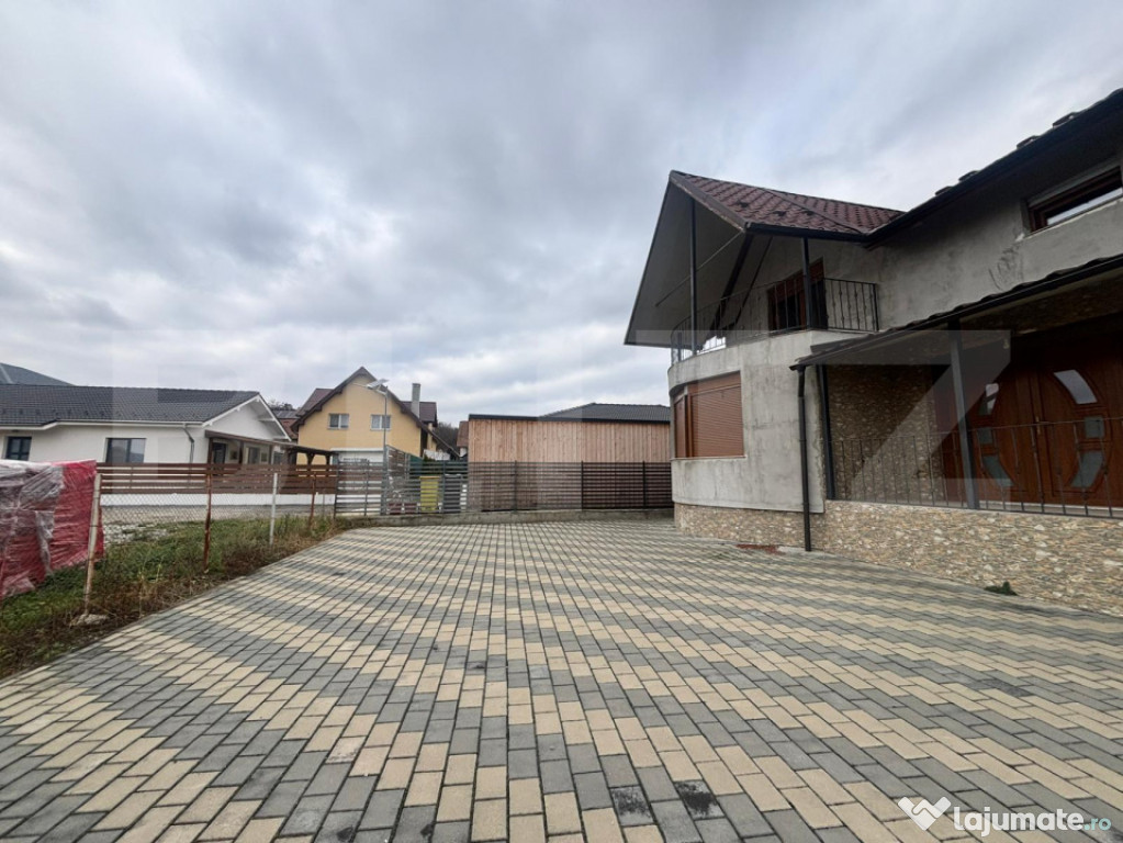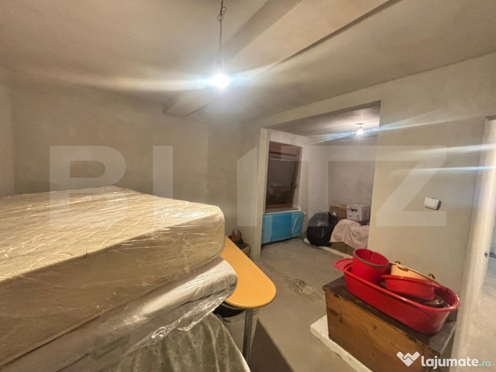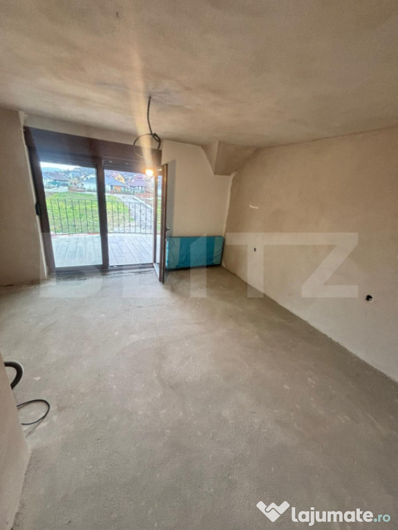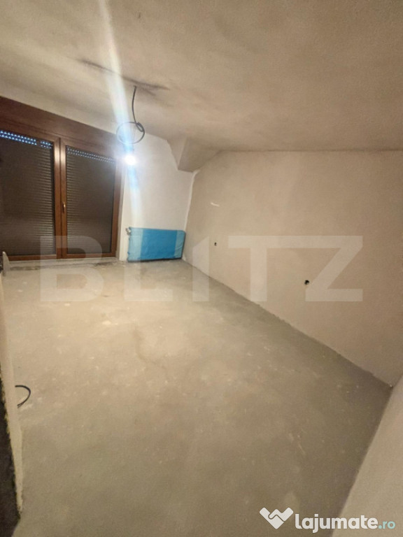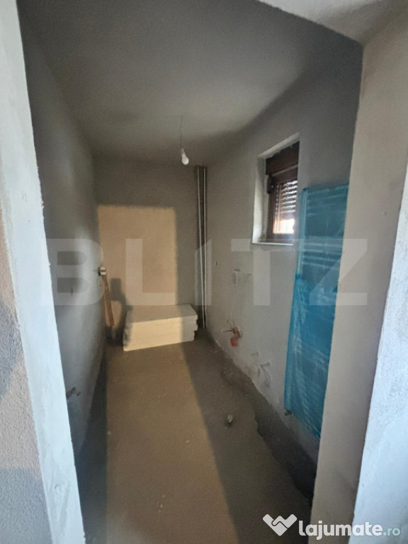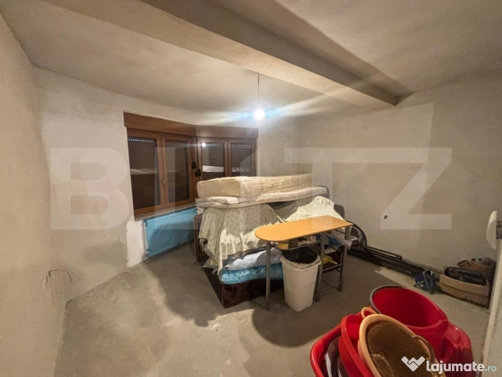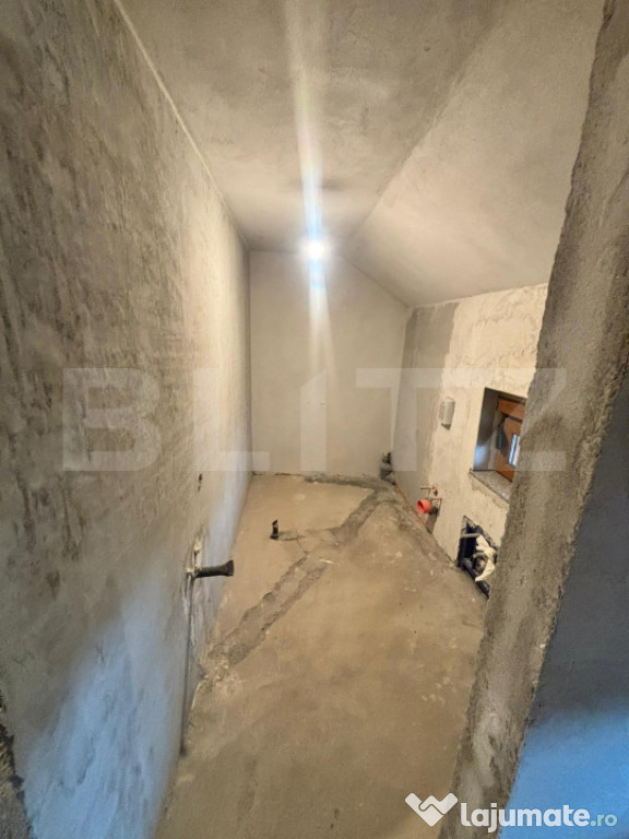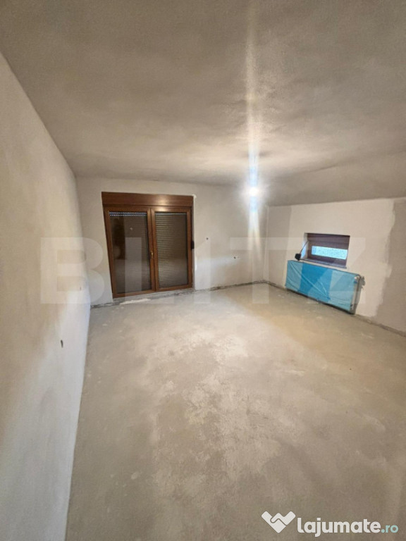 Proprietate pe două niveluri, situată într-o zonă liniștită, cu o suprafață totală de 190 mp, oferită spre vânzare semi-finisată, ideală pentru a fi personalizată după preferințele viitorului proprietar.Parter: