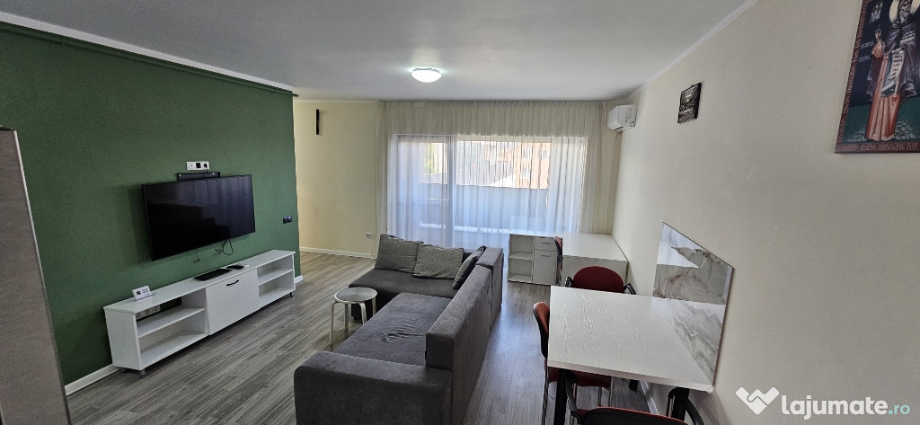 Inchiriez apartament 60m2 cu dormitor, living cu bucatarie, baie, dresing, balcon, terasa, parcare subterana are incalzire in pardoseala, centrala proprie, aer conditionat, mobila la comanda, curte interioara, liftDoar nefumatori si fara animale