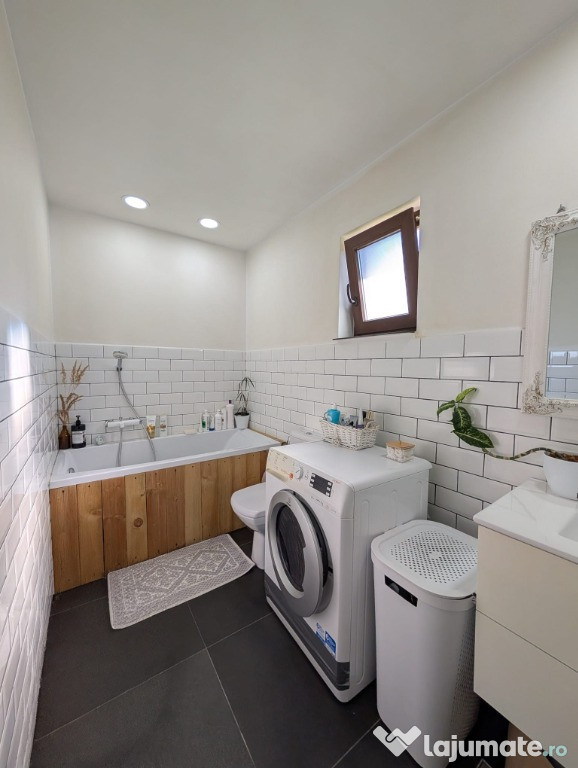 Casa se vinde complet mobilată și utilată, beneficiind de finisaje de calitate, aer condiționat și acces auto pentru până la 4 mașini în curtea proprie.