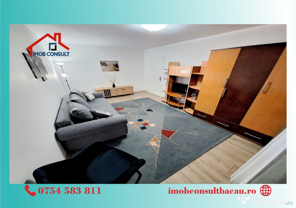 Imob Consult Bacau va propune spre închiriere o garsonieră primitoare, situată la parterul unui bloc cu 4 etaje, construit în 1986 și recent izolat termic. Proprietatea se află într-o zonă liniștită, cu acces facil către mijloace de transport, magazine și puncte de interes.Garsoniera este complet mobilată și utilată, gata pentru mutare imediată. Printre facilități se numără: