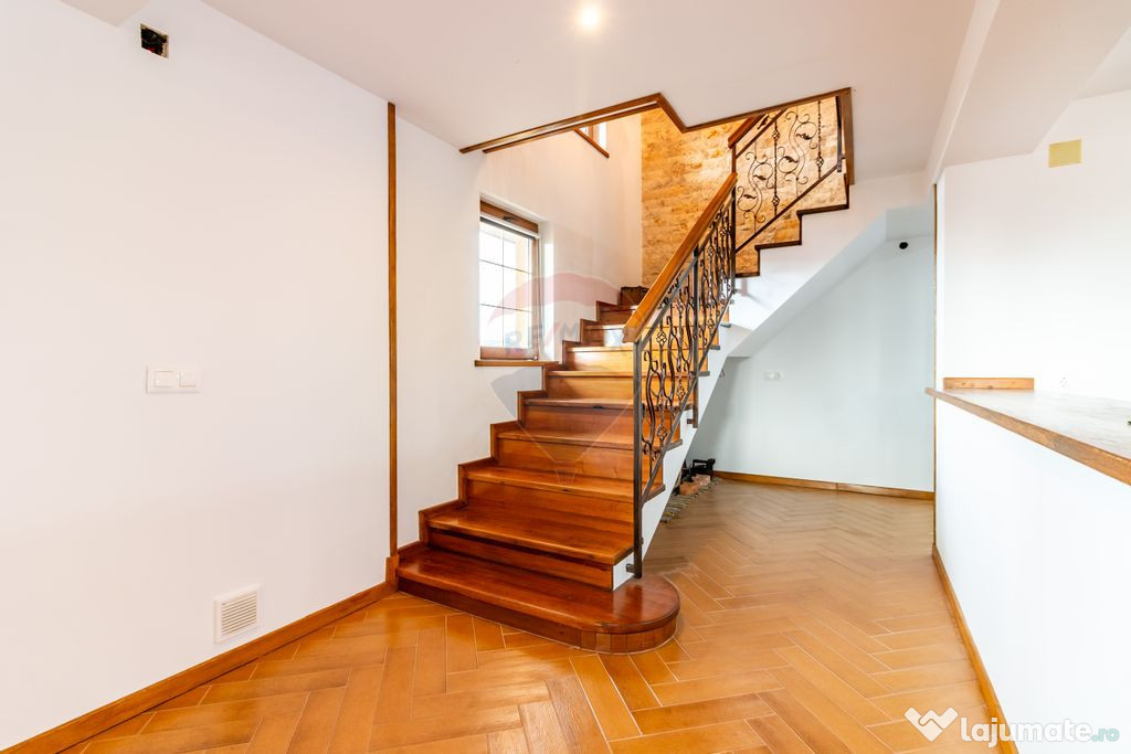 Interiorul se remarcă prin finisaje naturale – parchet masiv la parter și uși din lemn în toată casa, iar scara interioară este realizată din lemn masiv.
