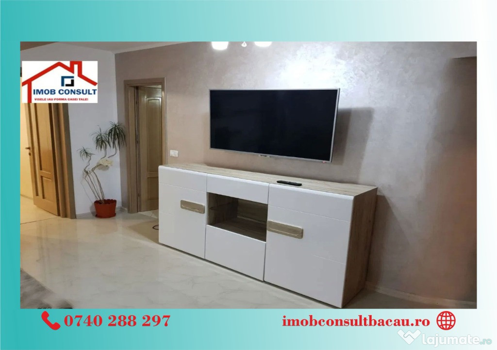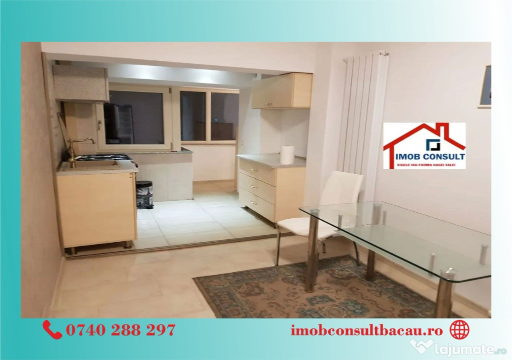 Echipa Imob Consult Bacau vă propune spre închiriere un apartament cu 2 camere, decomandat, situat în centrul municipiului Bacău, într-un imobil nou, modern, dotat cu lift.Apartamentul este amplasat la etajul 2 din 8 și se remarcă printr-o compartimentare eficientă și o suprafață generoasă.
