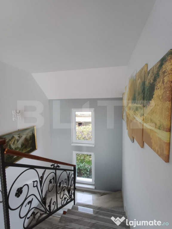 Descoperiti oportunitatea unica de a deveni proprietarul unei case de vis in Mihai Viteazu, o locatie care combina perfect intimitatea unui camin linistit cu acces facil la facilitatile esentiale. Aceasta proprietate impresionanta, se afla in apropiere de Cheile Turzii, ceea ce o face ideala atat pentru a fi transformata intr-o pensiune primitoare, cat si pentru a gazdui o familie numeroasa, datorita designului sau inteligent si spatiului generos. Nu pierdeti ocazia de a vizita si, eventual, de a achizitiona aceasta casa splendida la doar 12 minute de Cheile Turzii, un spatiu unde confortul, eleganta si functionalitatea se intalnesc armonios.