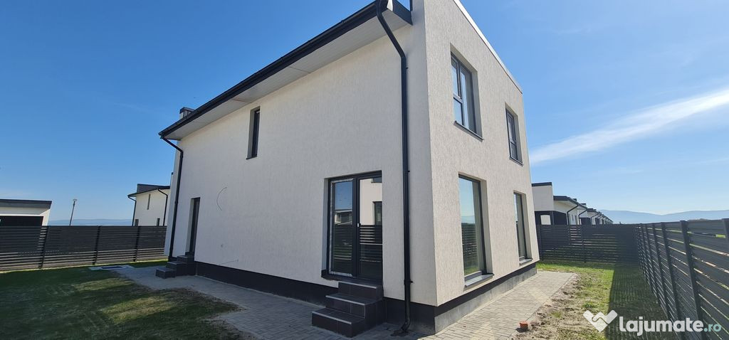 Agentia imobiliara VIP Imob va propune spre cumparare o casa moderna, stil mediteranean, cu 4 camere si 3 bai, situata in complexul rezidential Valea cu Flori Residence 9 din cartierul Izvor. Imobil nou, finalizat si intabulat.Compozitie: