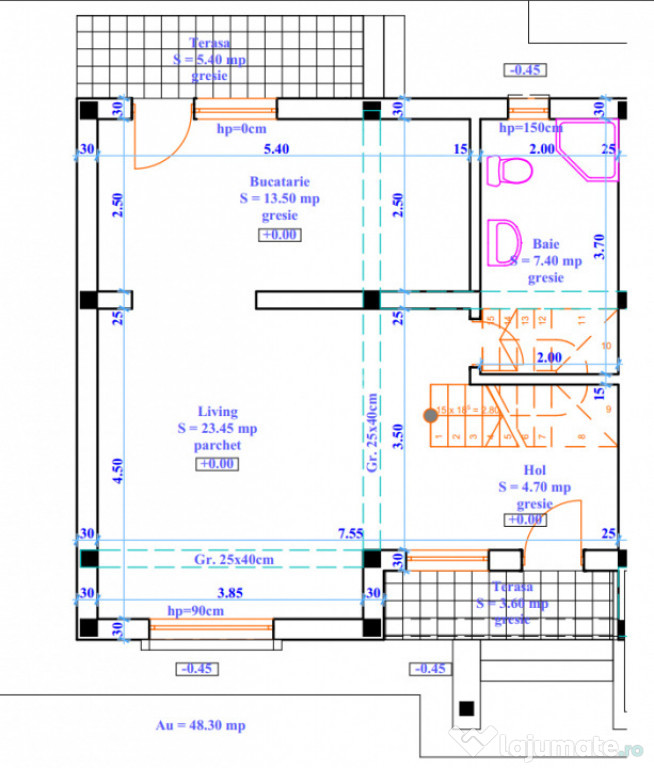 Anuntul DUPLEX 4 CAMERE, 2 BAI SI POD GENEROS , CAPAT CUG-FUNDATIA O este adaugat de pe LaJumate.ro.