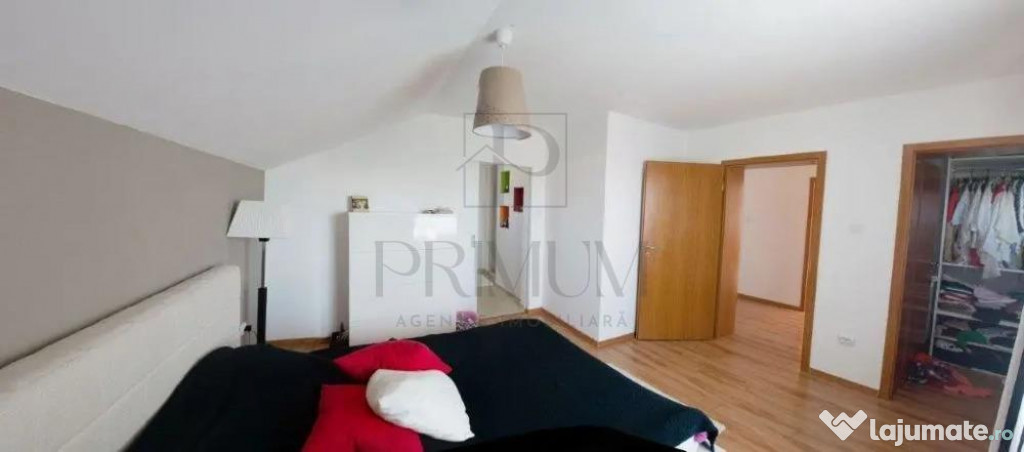 Etaj : dormitor matrimonial cu dressing si baie, doua dormitoare ( ambele cu balcon), baie iar la mansarda este amenajat un dressing generos.