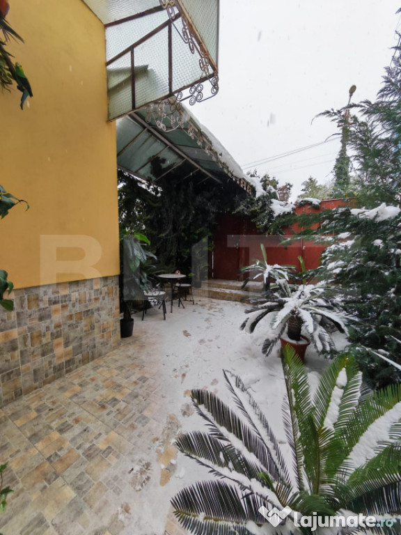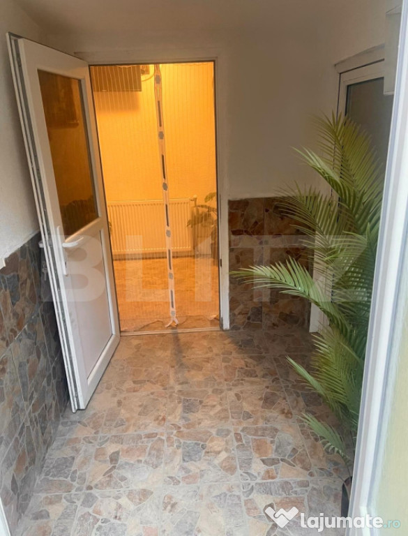 Casa principală se desfășoară armonios și cuprinde un antreu generos, două camere luminoase, o bucătărie și o baie. Spațiile sunt echilibrate, ușor de locuit, iar înălțimea de 3 metri a camerelor amplifică senzația de aerisit și lumină, oferind libertate în amenajare și un confort greu de replicat în construcțiile noi.
