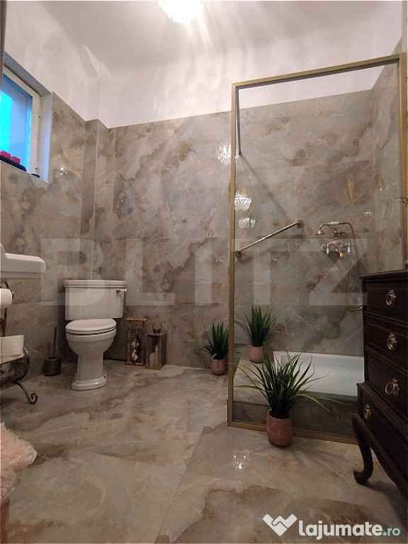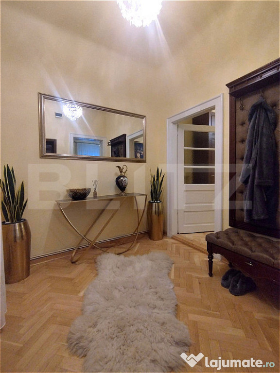 De cum pășești în antreul generos, simți liniștea. Este acel spațiu de tranziție care te desprinde de agitația orașului și te introduce, pas cu pas, în ritmul casei. Lemnul parchetului masiv, ușile originale și tâmplăria din lemn spun o poveste veche, atent păstrată și completată în 2024 cu tot ce înseamnă confortul de azi: instalații noi, izolație exterioară, acoperiș refăcut, centrală pe gaz. O casă care a fost iubită și îngrijită, nu doar renovată.