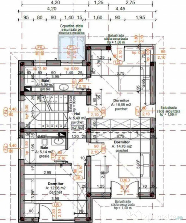 Interior: semifinisat (ușă intrare, pereți gletuiți, șapă, sistem de încălzire în pardoseală)