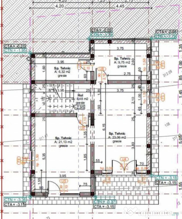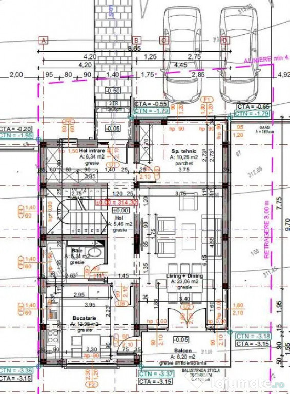Demisol: spațiu tehnic, baie, bucătărie, loc de luat masa, terasă, acces curte