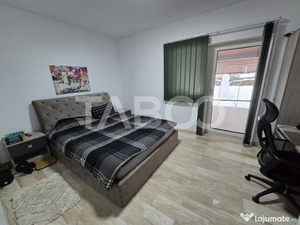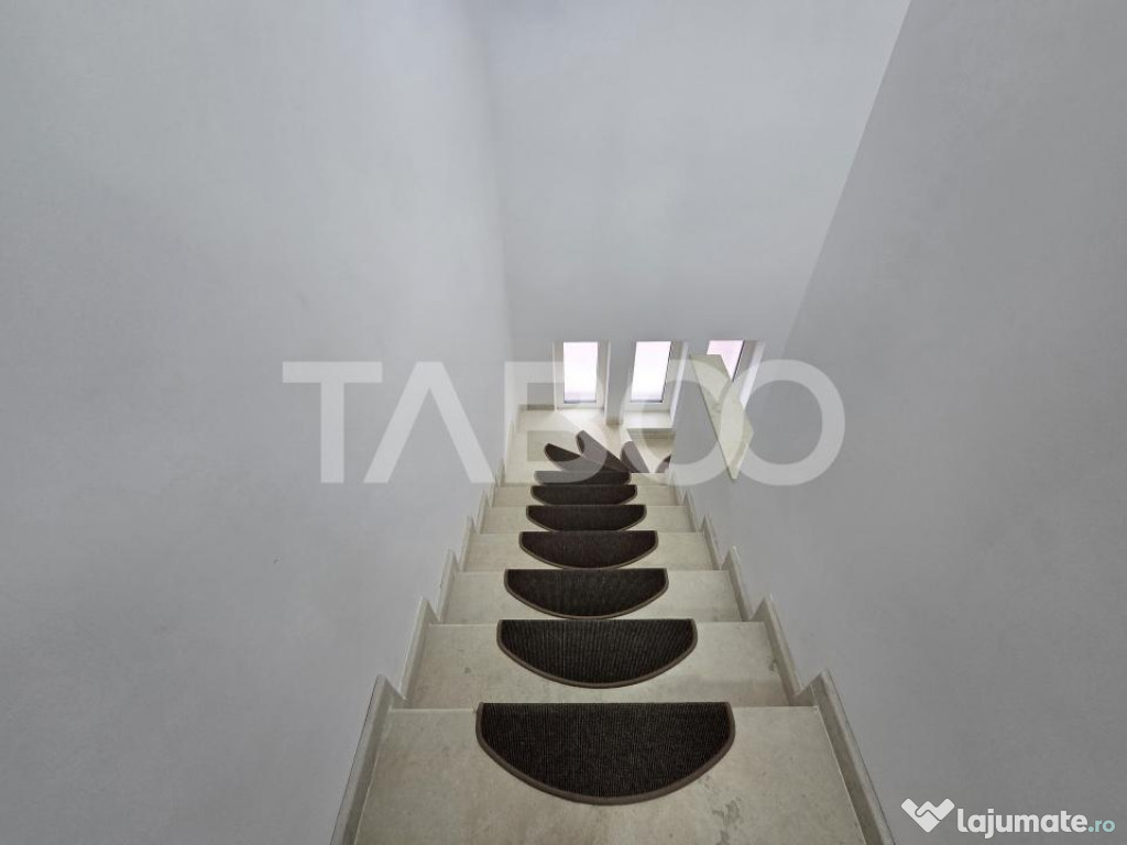 TABOO Imobiliare propune o casa individuala de vanzare in zona Selimbar din Sibiu, aflata pe un teren in suprafata de 852 mp, cu un front stradal de 26 mp, curte libera de 707 mp, accesul auto realizandu-se pe o poarta electrica din aluminiu, dispunand de 6 locuri de parcare.Casa este construita in anul 2020, pe structura din caramida, avand regimul de inaltime P+E+Pod, cu o suprafata utila de 166 mp fiind compusa la parter din hol, camera tehnica, debara, bucatarie inchisa mobilata si utilata cu electrocasnice de cea mai buna calitate, un living luminos cu iesire pe terasa si in curtea din spate, hol, baie cu geam de aerisire, dormitor cu iesire pe terasa si in curte si scarile care fac accesul spre etaj.