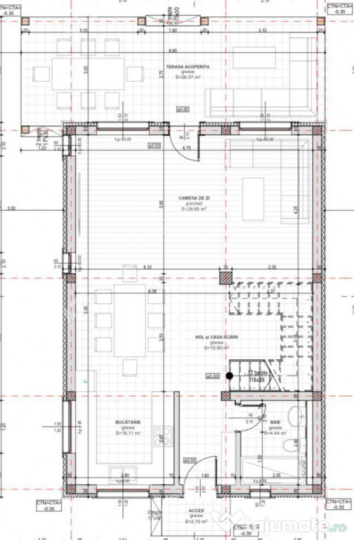 Separat de suprafata utila locuinta dispune de o terasa acoperita in suprafata de 26 mp.