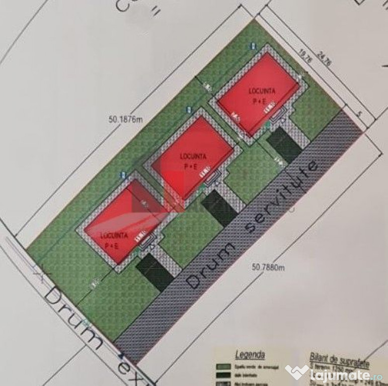 Intre case se va construi un gardulet de delimitare fix pe hotar si gard intre drumul de servitute si proprietate pe fata