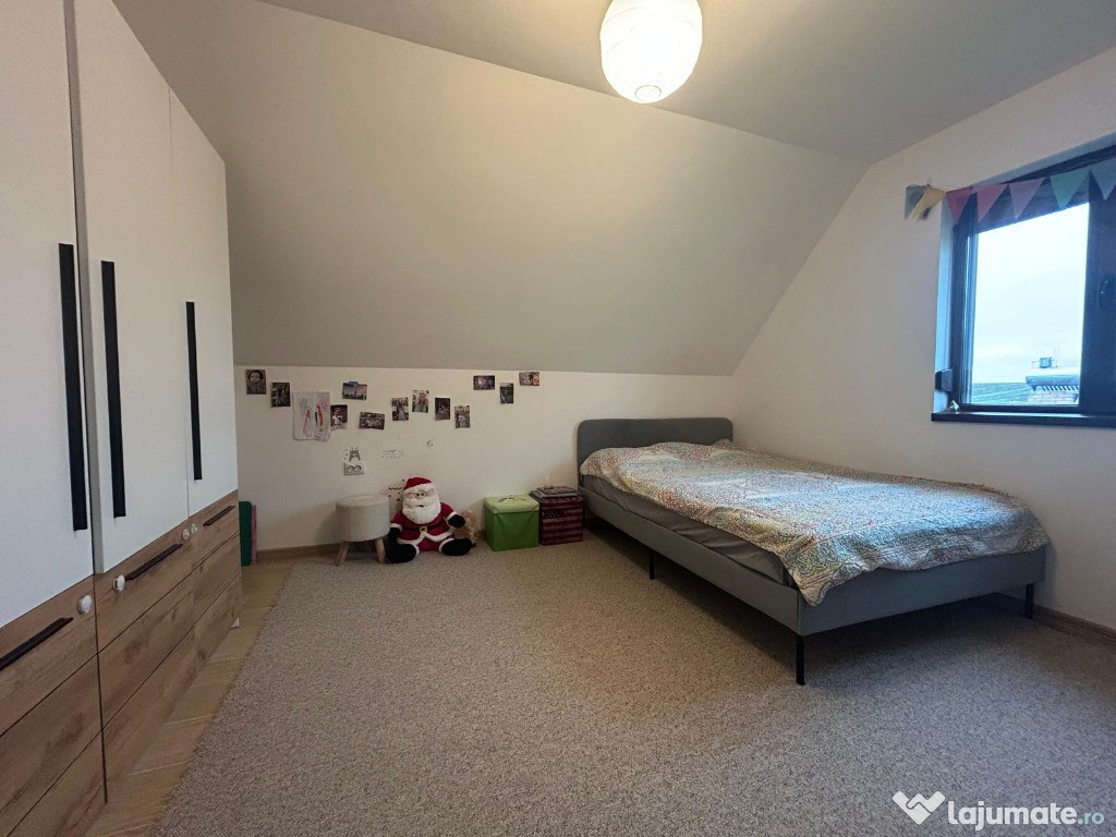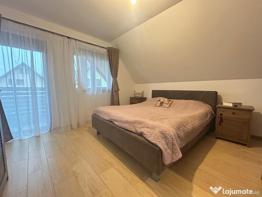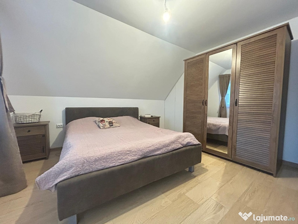 Casa se vinde complet mobilată și utilată, fiind gata pentru mutare imediată. Printre dotări se regăsesc: mașină de spălat vase, mașină de spălat rufe, cuptor electric, plită, frigider și mobilier de calitate. Încălzirea este realizată prin pardoseală, oferind un confort termic deosebit pe tot parcursul anului.